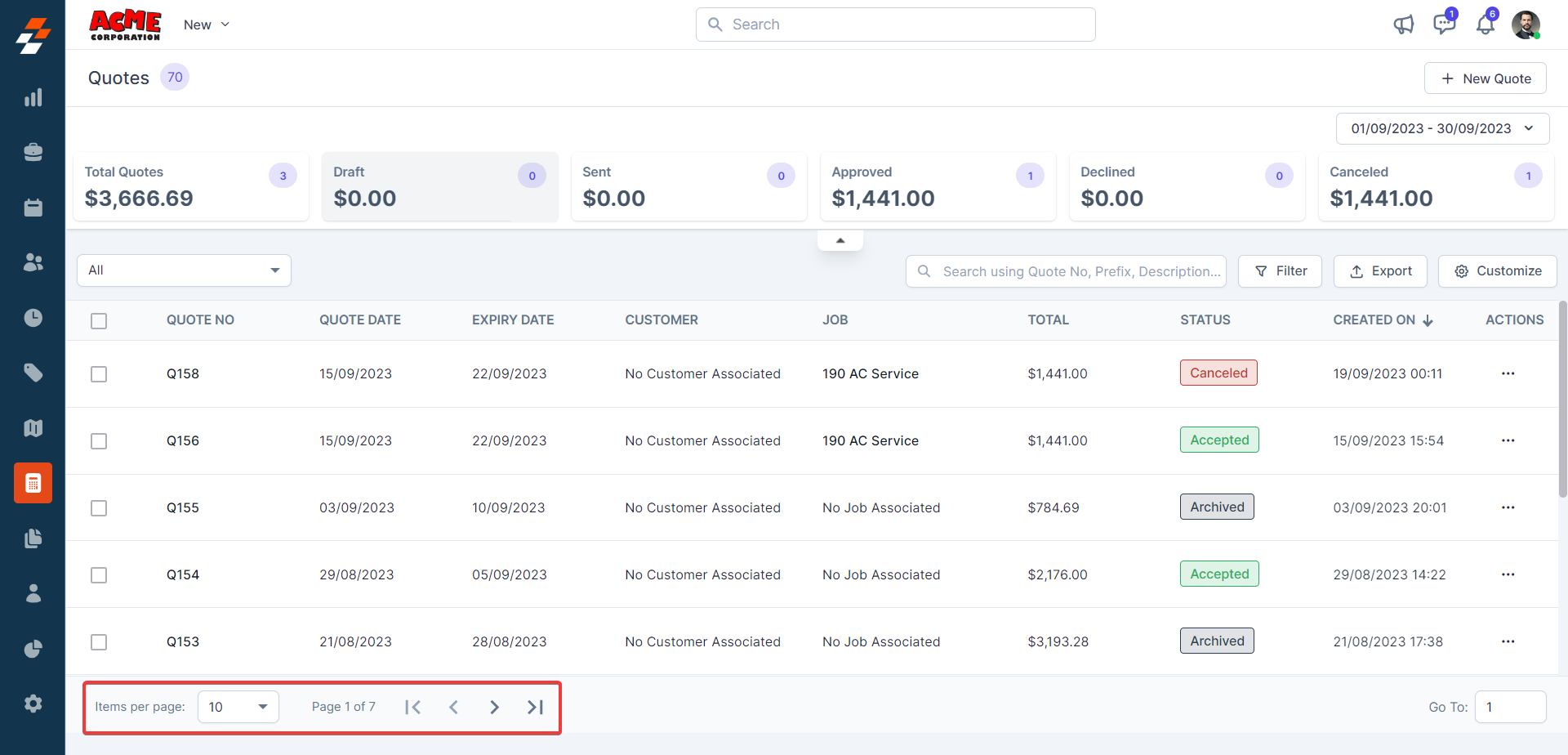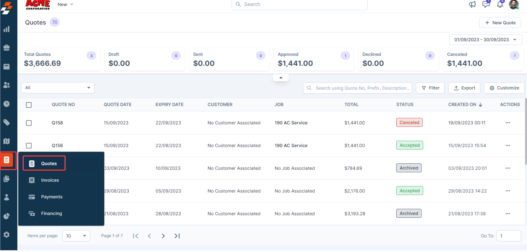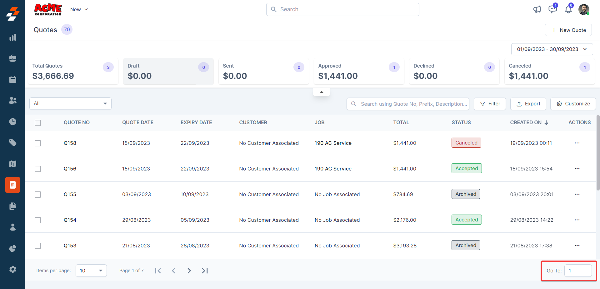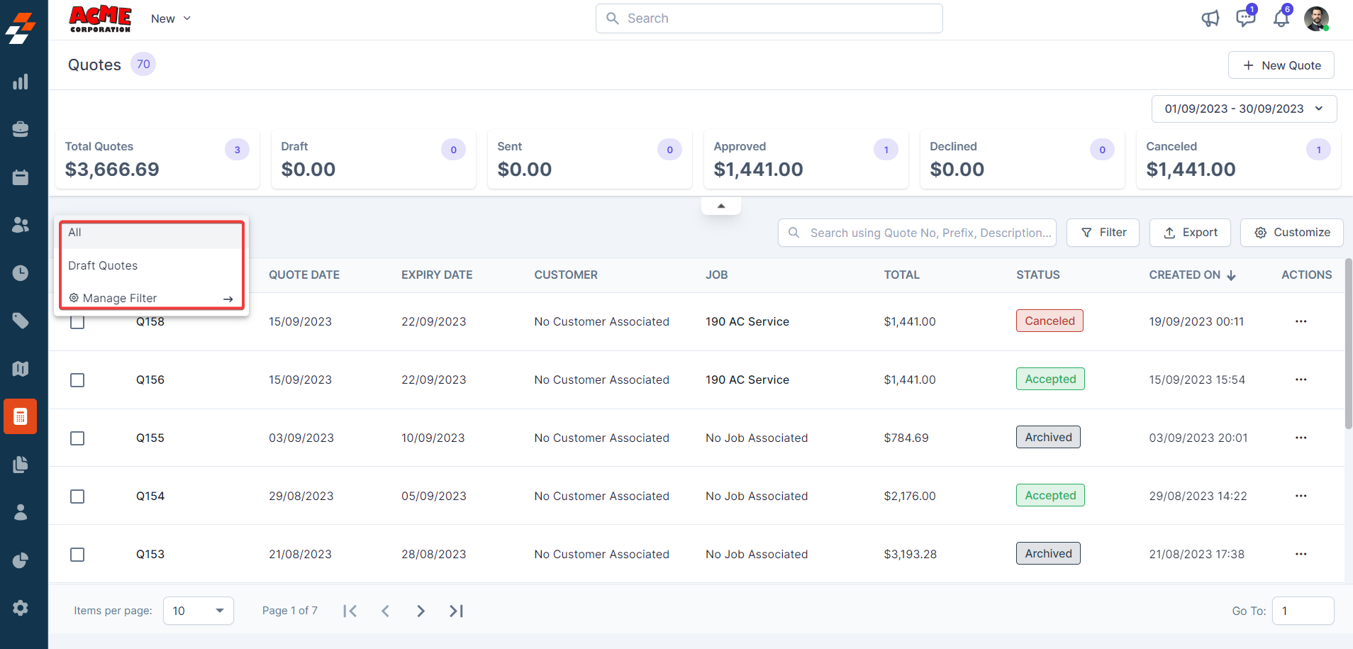 3. You can view the "Quote Summary," which shows the quotes' summary based on the status.