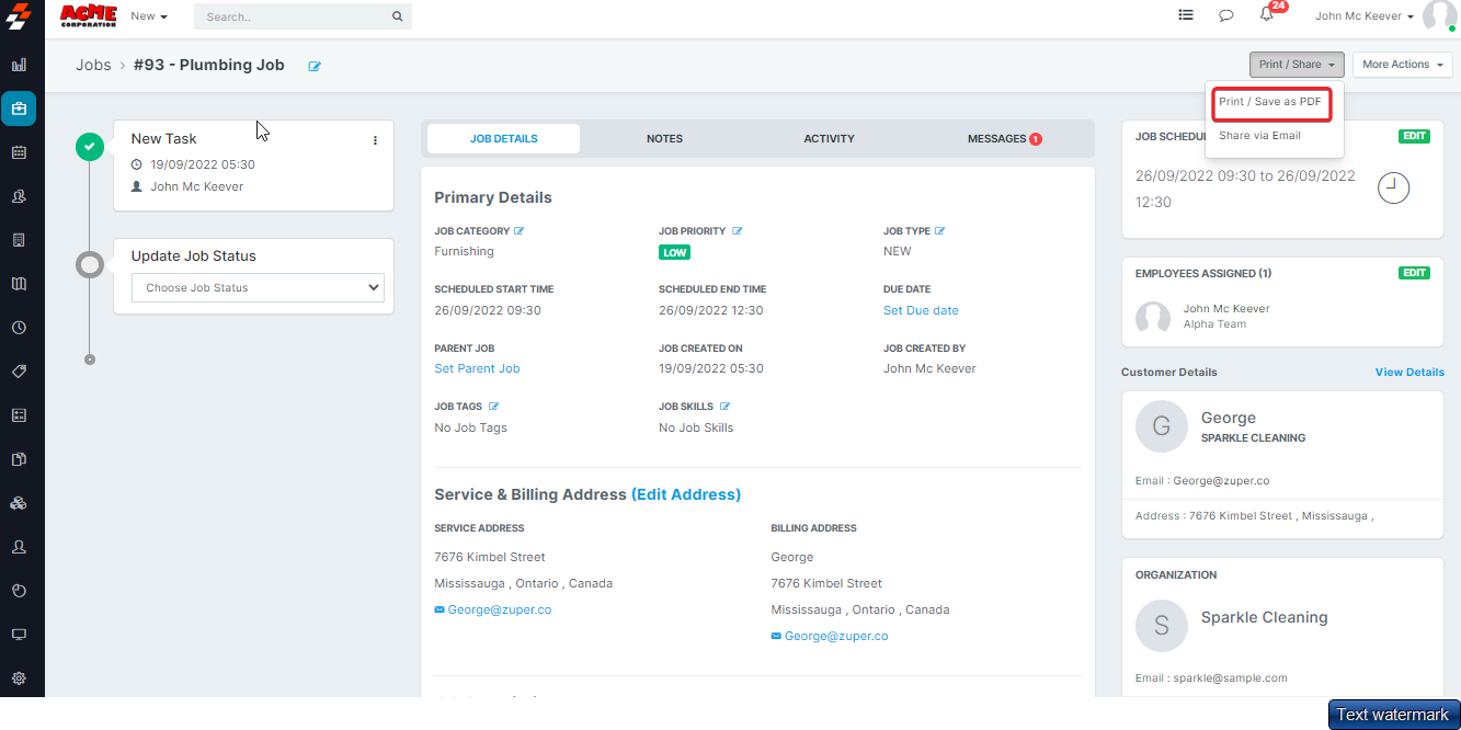 You can print and share your job details aka work orders whenever you need to share a copy of your job details version with your customers.