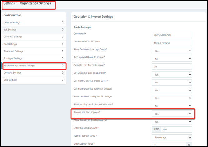 Setting -> Organization Settings -> Quotes & Invoices -> turn on “Require Line-Item