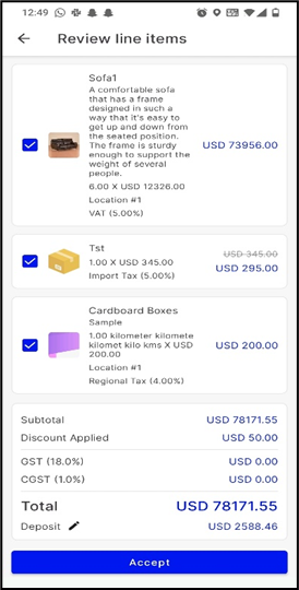 items and tap on the “Accept” to complete the line item’s approval