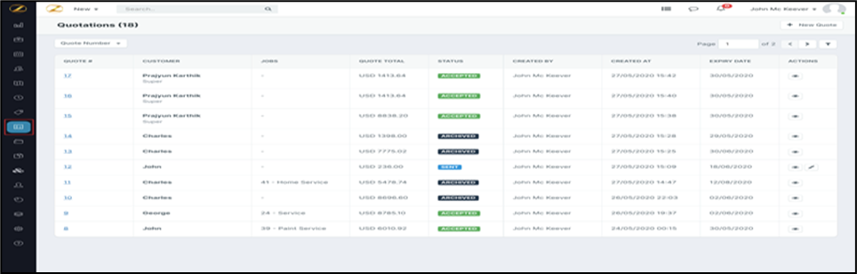 1. Select the “Quotations” module from the