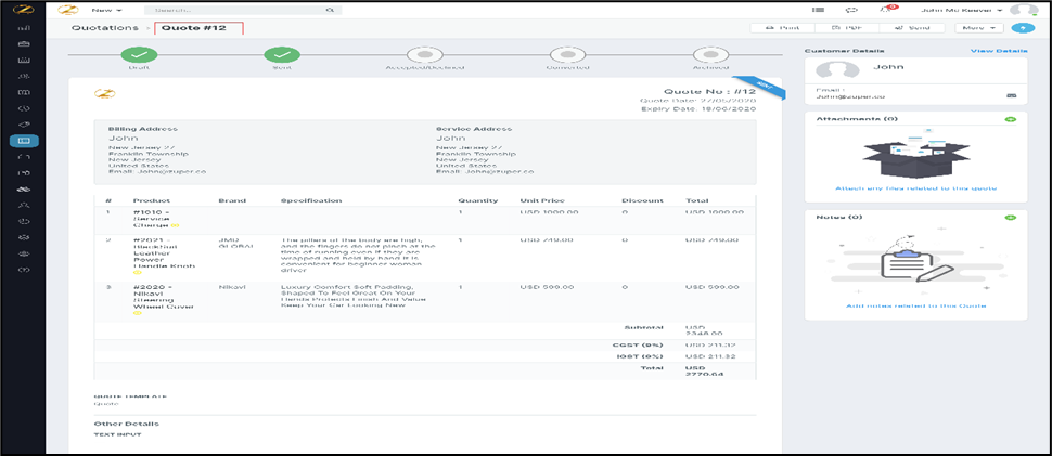 Navigation: Quotations --> New Quotation | View Quotation | Edit Quotation || Invoices --> New Invoice | View Invoice | Edit Invoice The user can now view the list of products under a single group while adding them from a group of available products ...