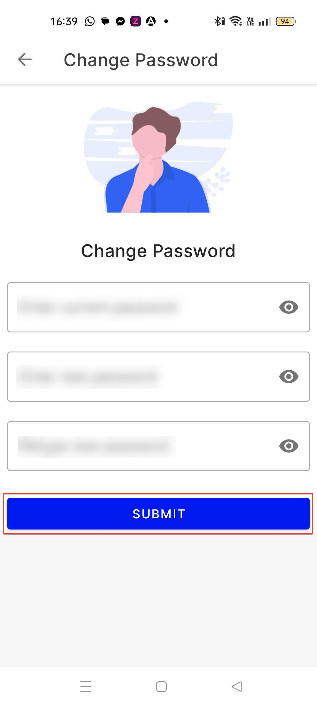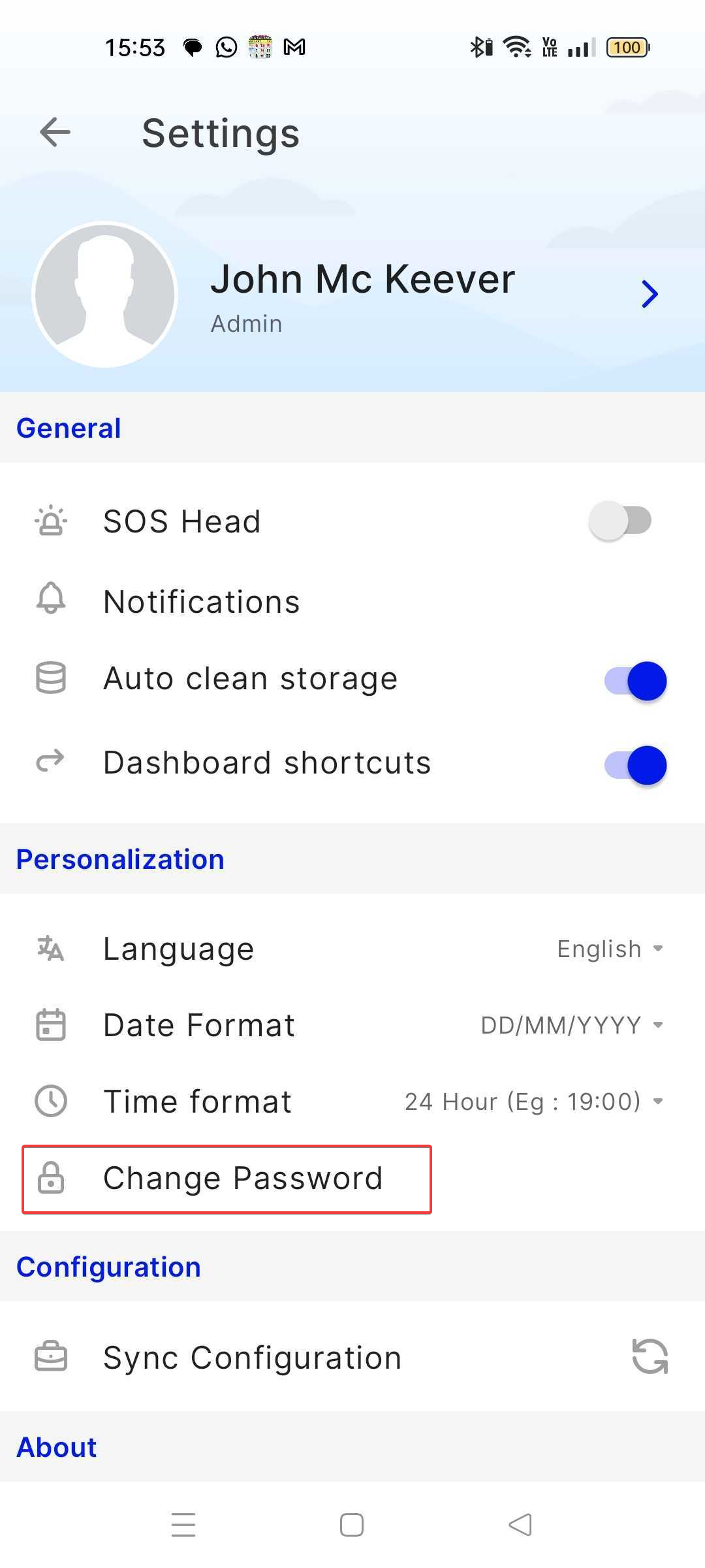 Whenever the user needs to password change, this is possible to modify directly from the mobile settings itself.