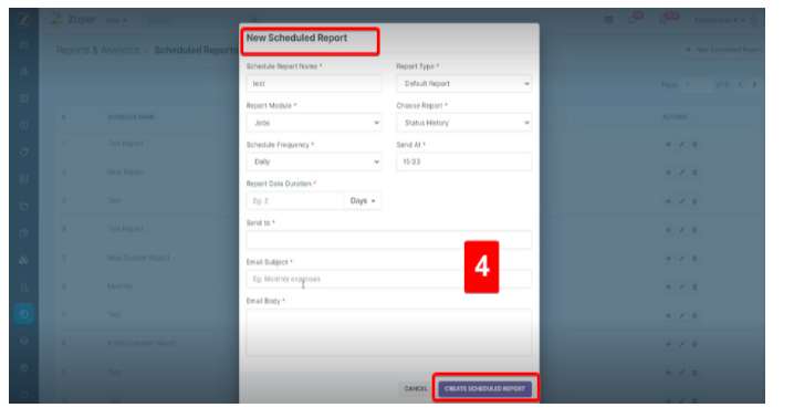 4. Add the required details and tap on the “Create Scheduled Report” button and the schedule will be done in a single click.