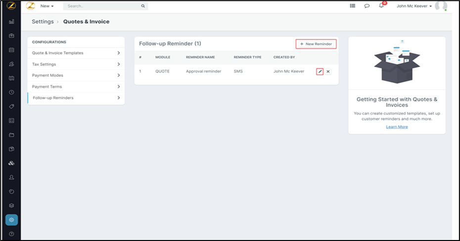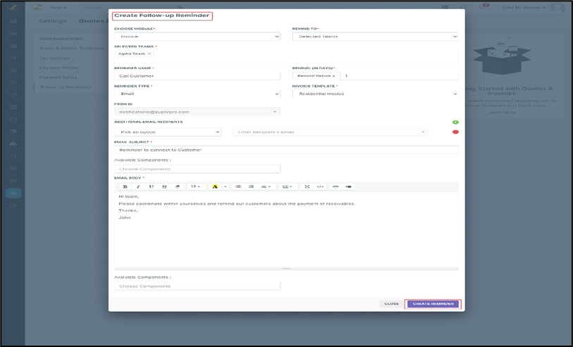 You can create a follow-up reminder for the internal back-office team or the customer by following the above steps.