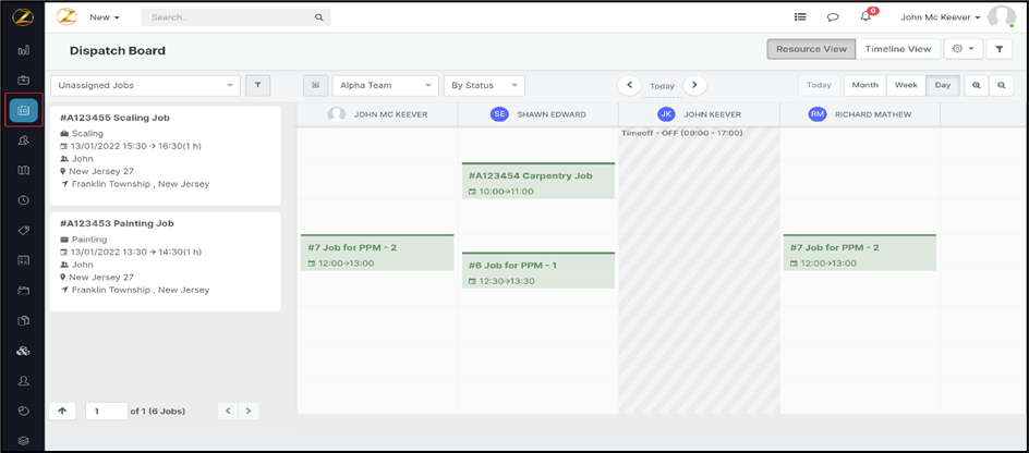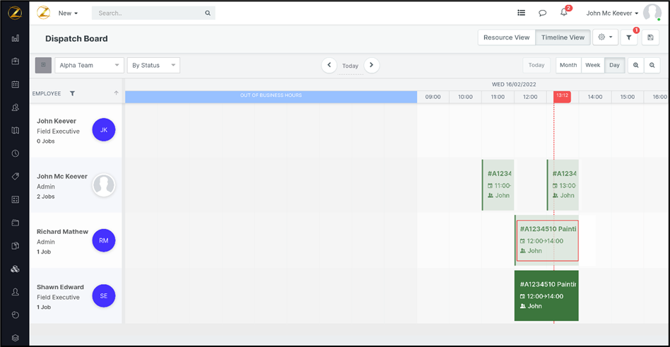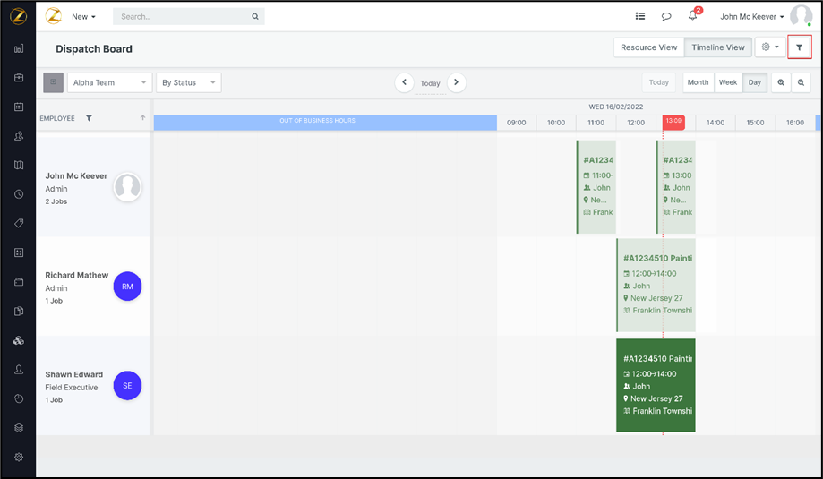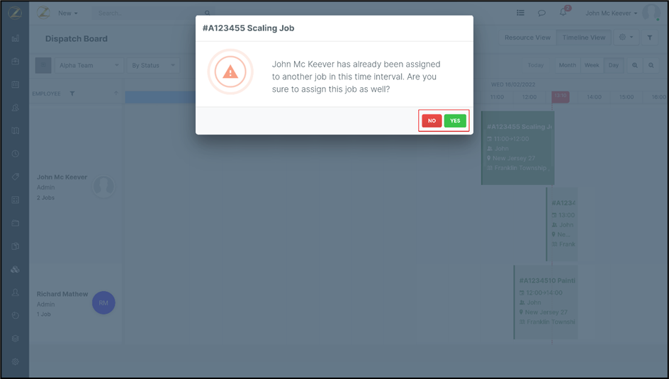 Navigation: Dispatch Board --> Job Card Filter / Job Assignment Conflict Alert
