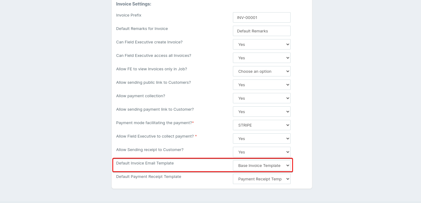 Navigation: Settings --> Organization Settings --> Job Settings / Quotation and Invoice