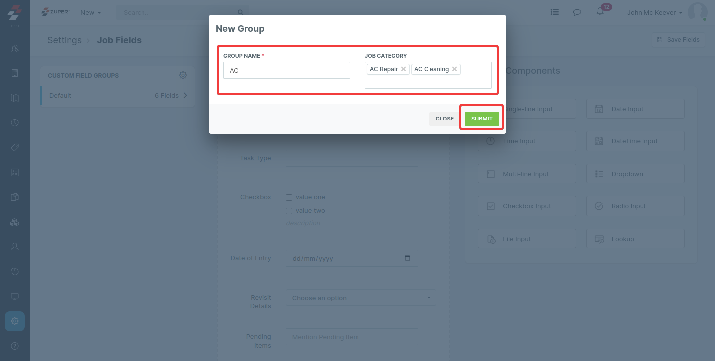 Custom fields defined by a business often have dependent aspects and play a substantial role in ensuring checklist progress. While creating a new job, proper validations are performed for user-defined fields.