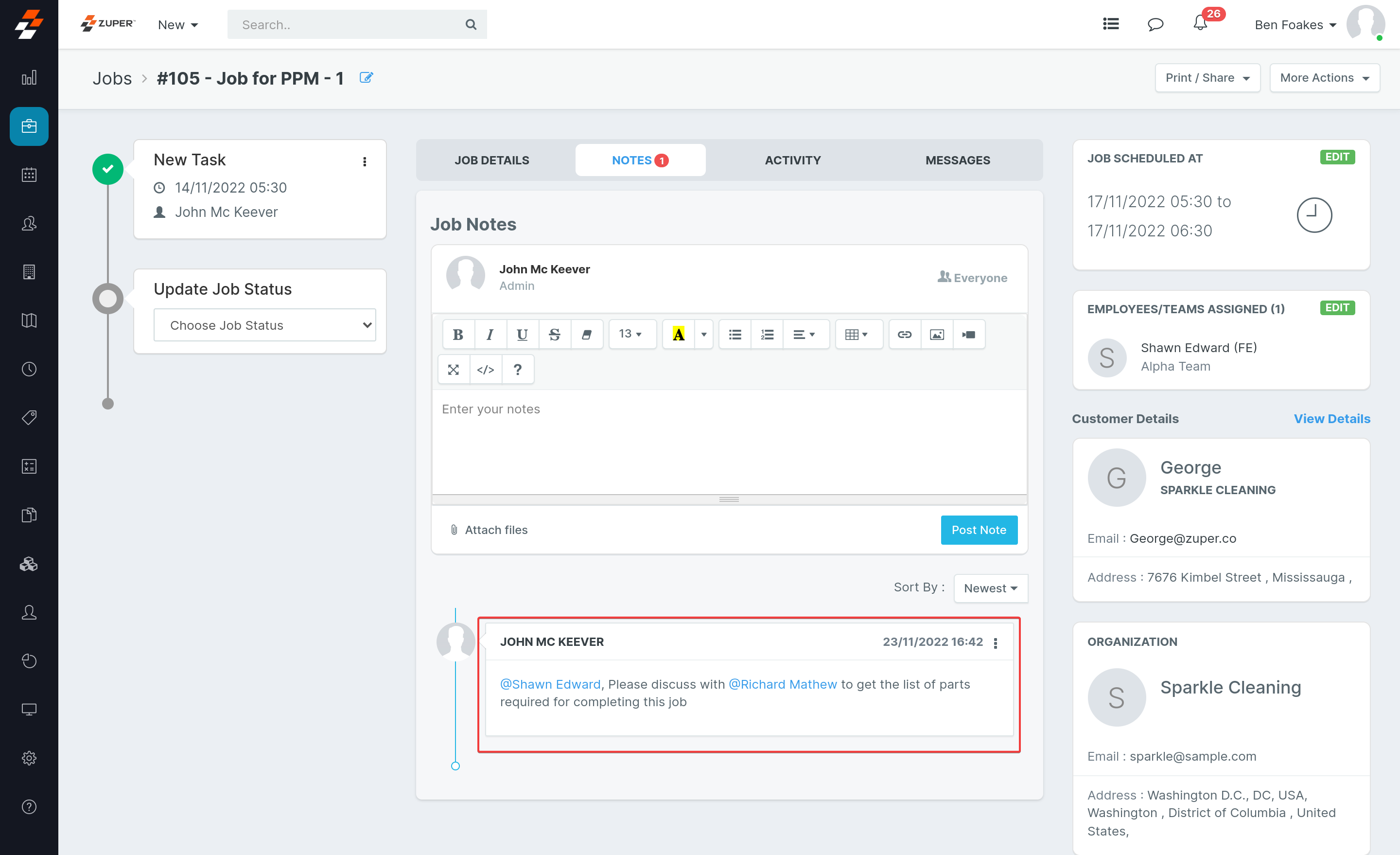 steps, businesses can create a new user tag in the Zuper Web App’s Job Notes