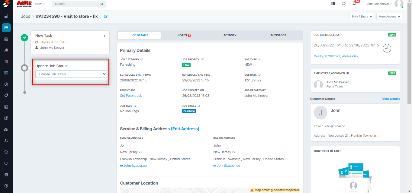 - Note: If you can't view the Update Status button, reach out to your Zuper Administrator.