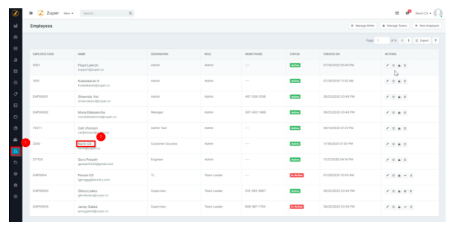 - Select the "Employees" icon from the Menu bar on the left.