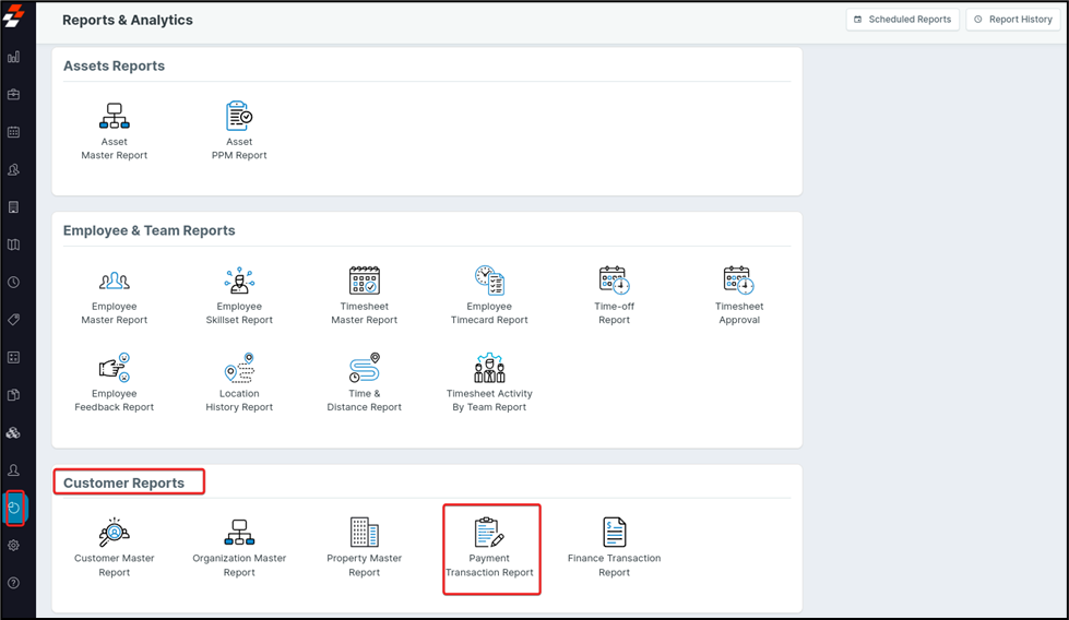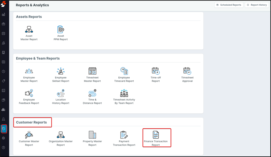 3. The "Finance Transaction Report" will be downloaded from the reports module as follows: