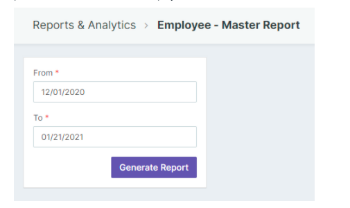 - Select the type of Report needed from the options. The Report can be generated for any specific time interval by entering the "From" and "To" dates in the Zuper Application.