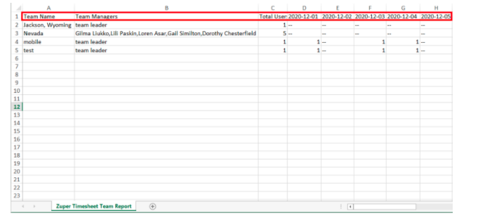 Timesheet Activity by Team Report gives information about the day-to-day work activities of employees based on their teams.