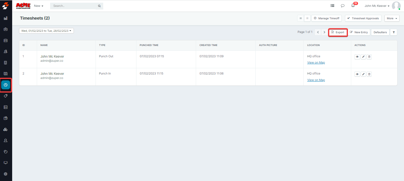 This report will be generated when you click the "Export" icon from the timesheets module.