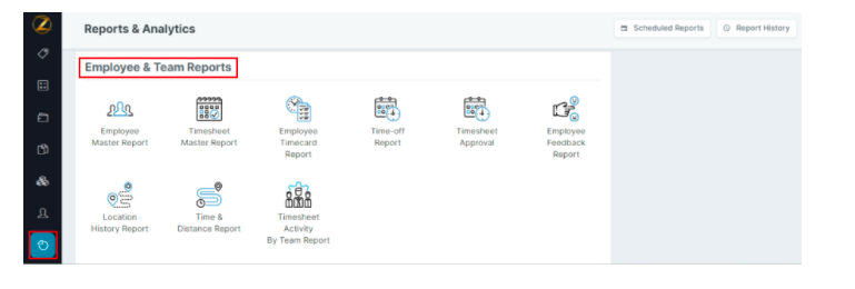 Employee & Team Reports help you with the complete details about all the employees and the different teams.