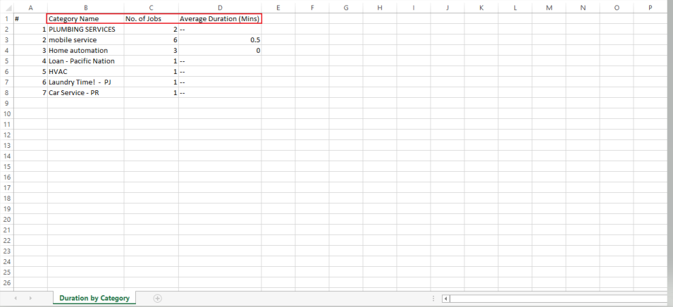 Average Duration / Category Report provides details about the number of jobs available and the average duration that will be taken to complete the job for all the Job Categories for any particular time period.