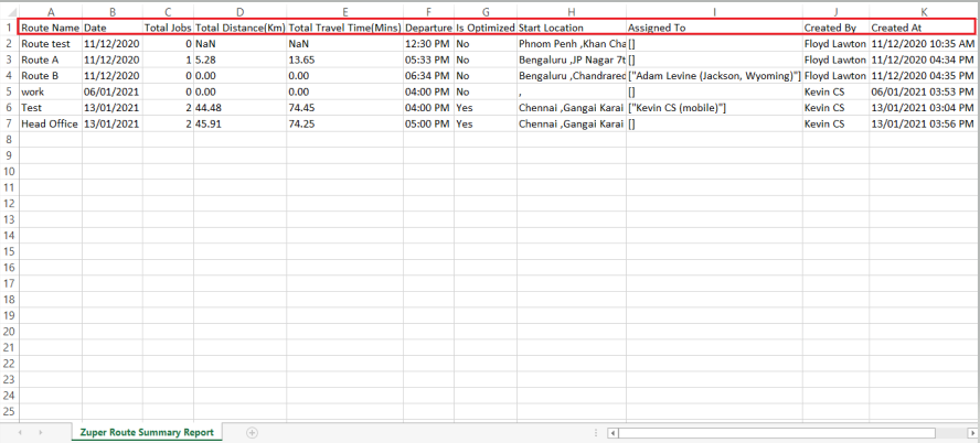Route Summary Report provides details on the total number of jobs that are available on every different route. It includes Route Name, Total Jobs, Distance, Travel Time, and so on.