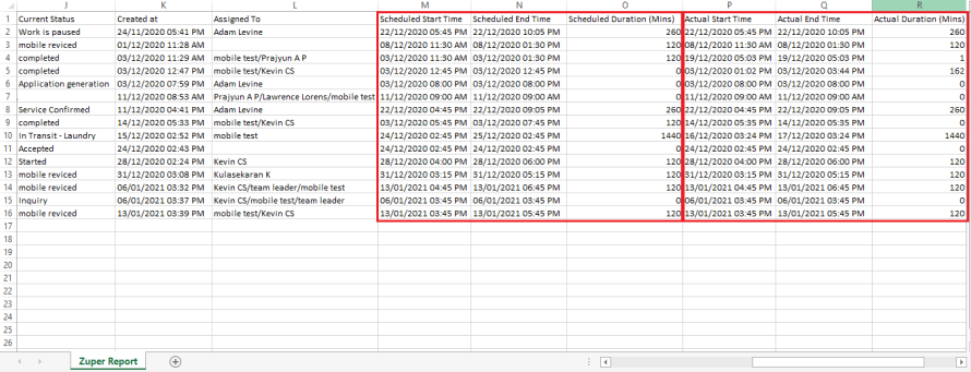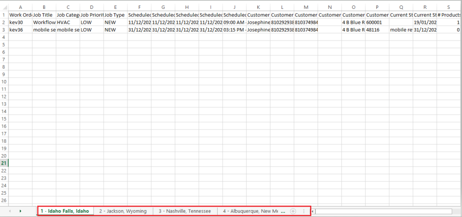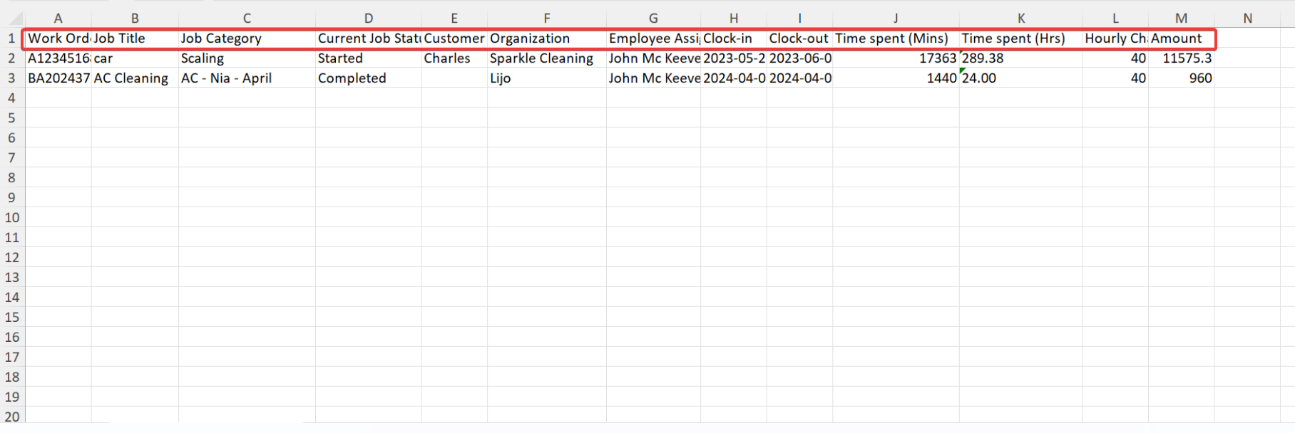 Reports generally include the Job details such as the Title, Category, Priority, Type, Scheduled Start Time, Scheduled End Time, Assigned To, Current Status, and also the Customer details such as Customer Name, Phone, Address, and so on.