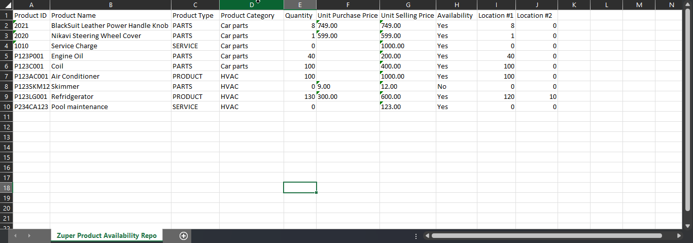 The Product Availability Report is used to export all the product availability-related information such as the Product ID, Product Number, Product Name, and Quantity.