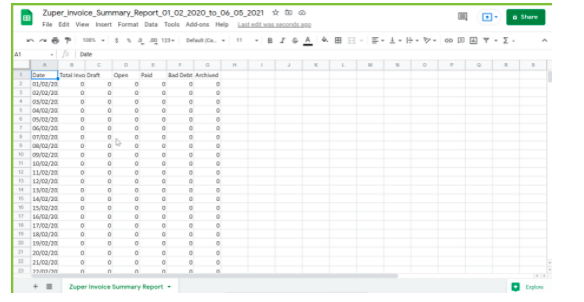 Invoice Status Summary Report will display an overview of the count of invoices in their respective status grouped by the invoice date in the selected date range.