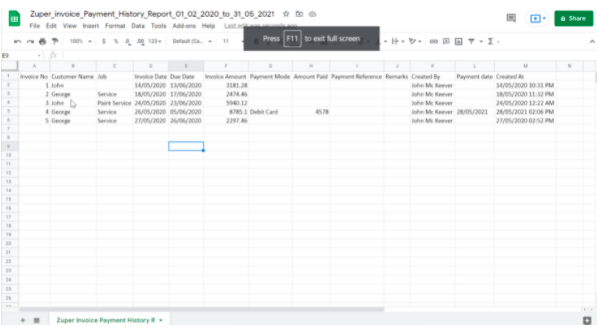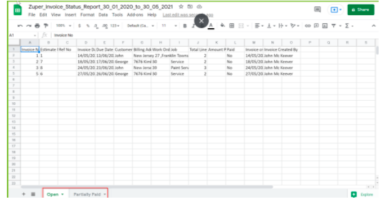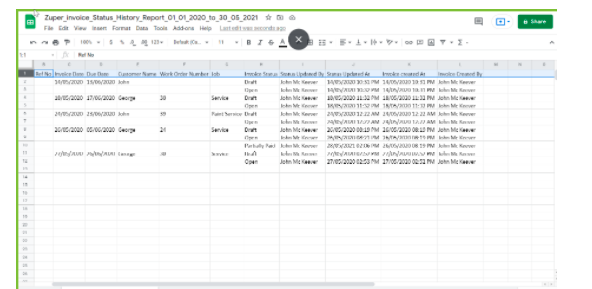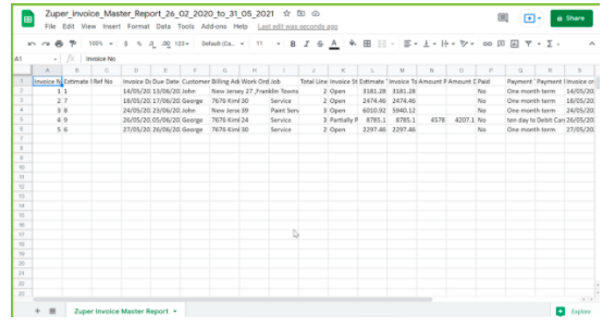 Invoice Master Report is used to export all the information about the invoices created including Invoice Date, Due Date, Customer Name, Billing Address, Work Order Status, Total Line Items, Invoice Status, and more.