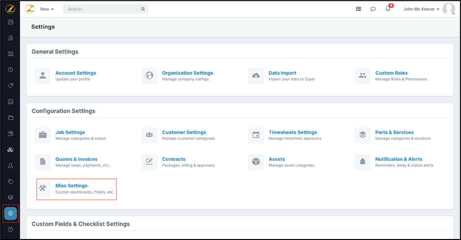 2. Select “Misc. Settings” under the “Configuration