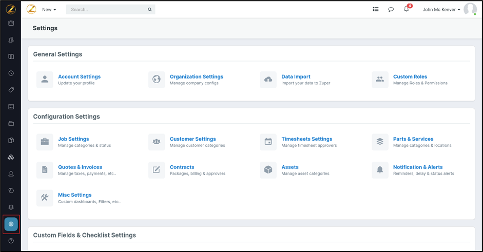 1. Click the “Settings” module from the left panel.