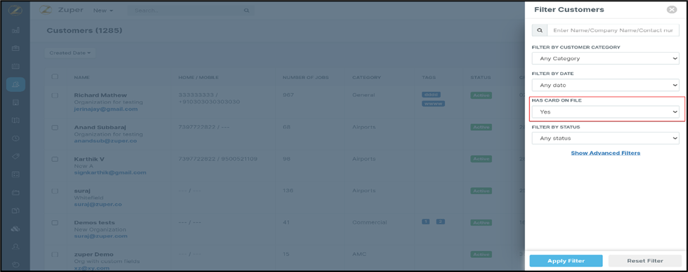card on the file” option. In specific cases, the users may need to filter