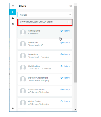 Note: By default, all the users from the team will be listed. The "Show only Recent Seen Users" checkbox will list the only users that are currently online or were online recently.