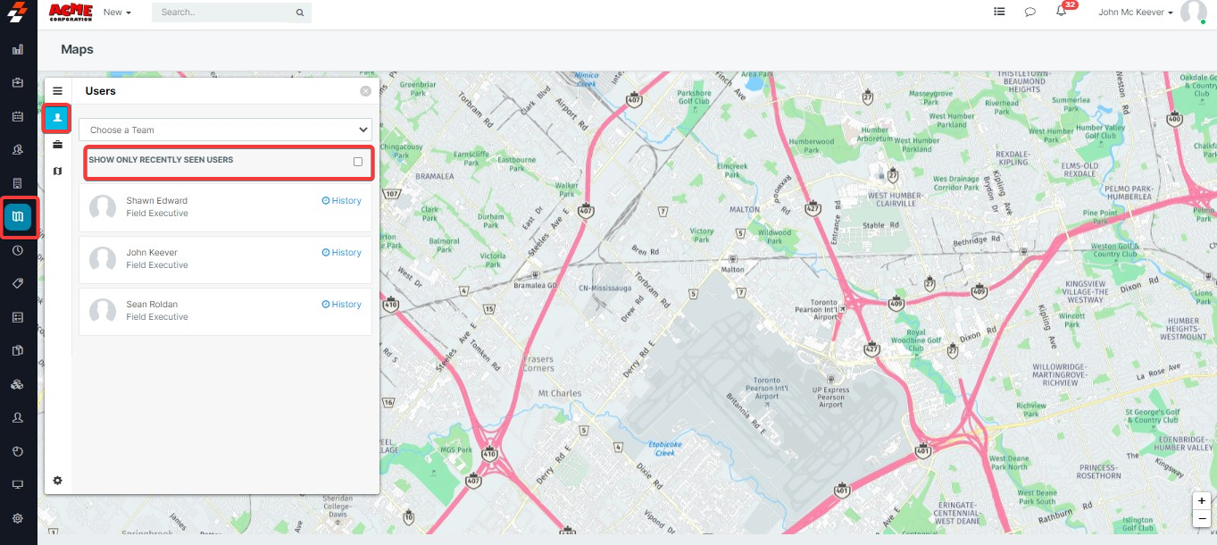 - On the maps Page, Click on the "Users" Button from the menu bar on the left.