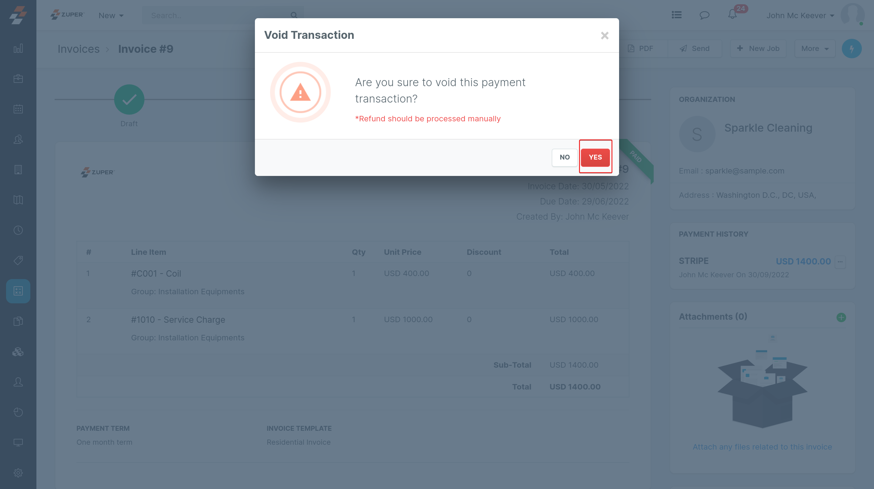 3. Press “Yes” to confirm the void transaction. (The