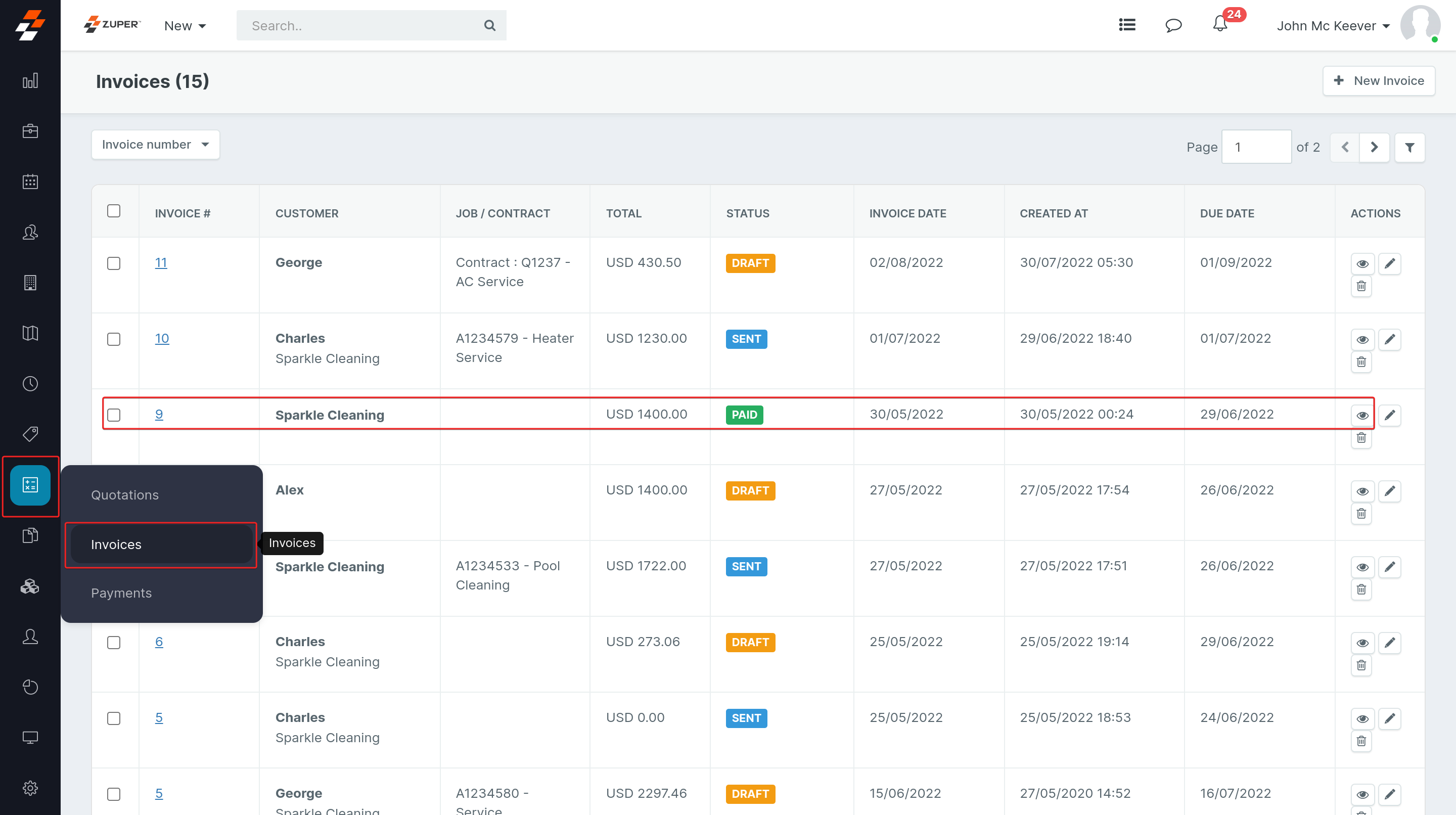 How to access and manage your AR invoice details in the Zuper web app?