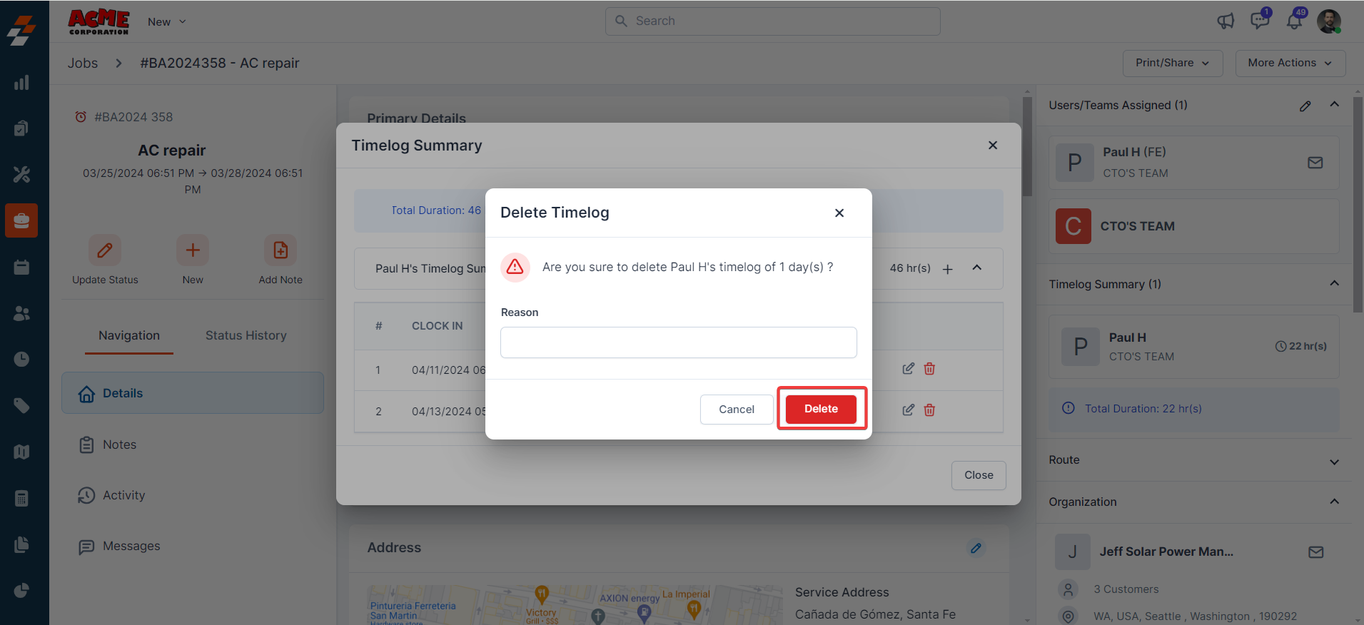 1. Click the Job timelog entry