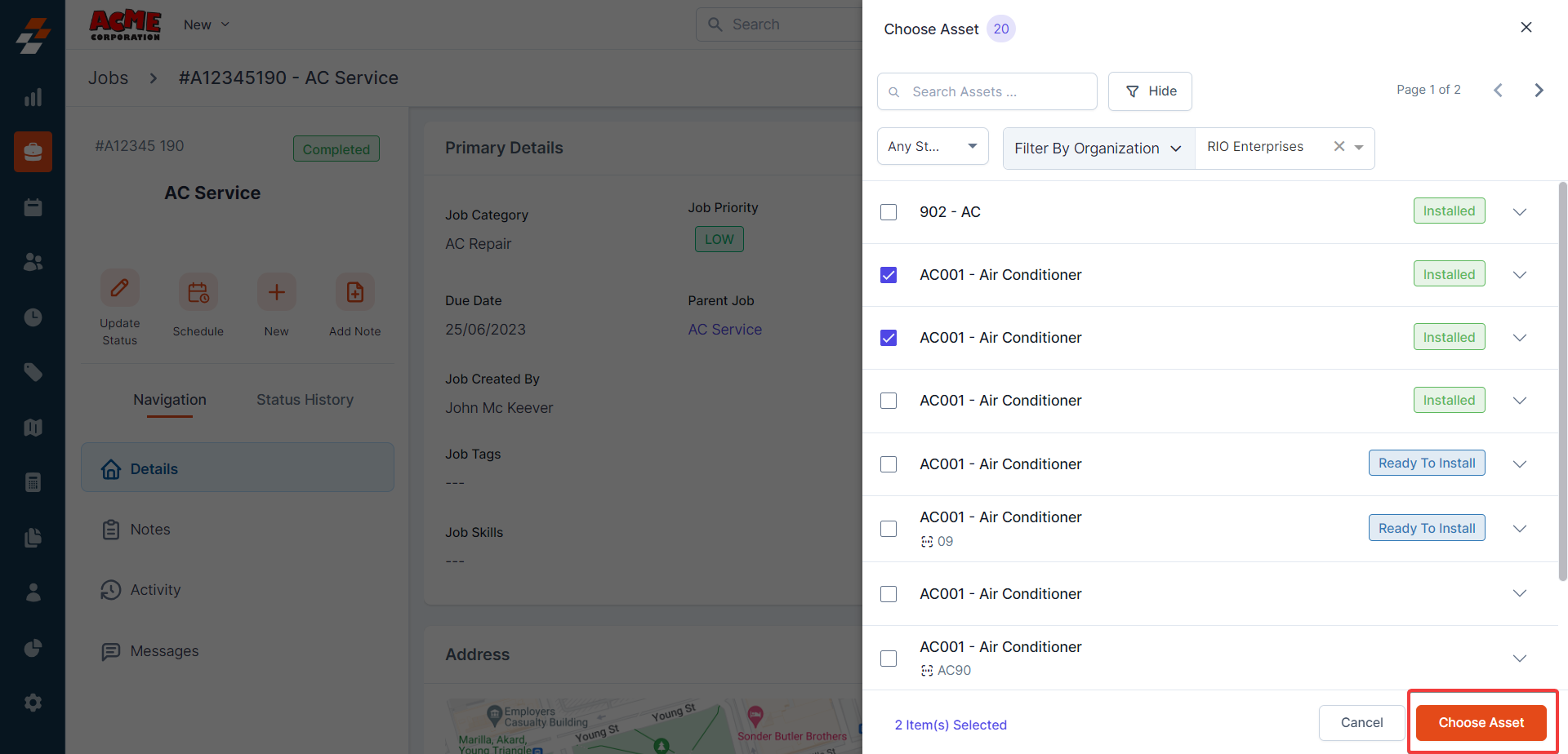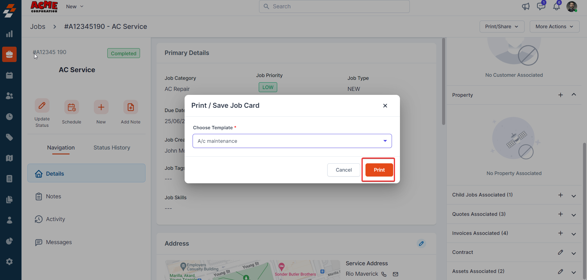 Note: You can also associate the orphan assets with the job. Click on "X" icon next to the customer name to clear the customer