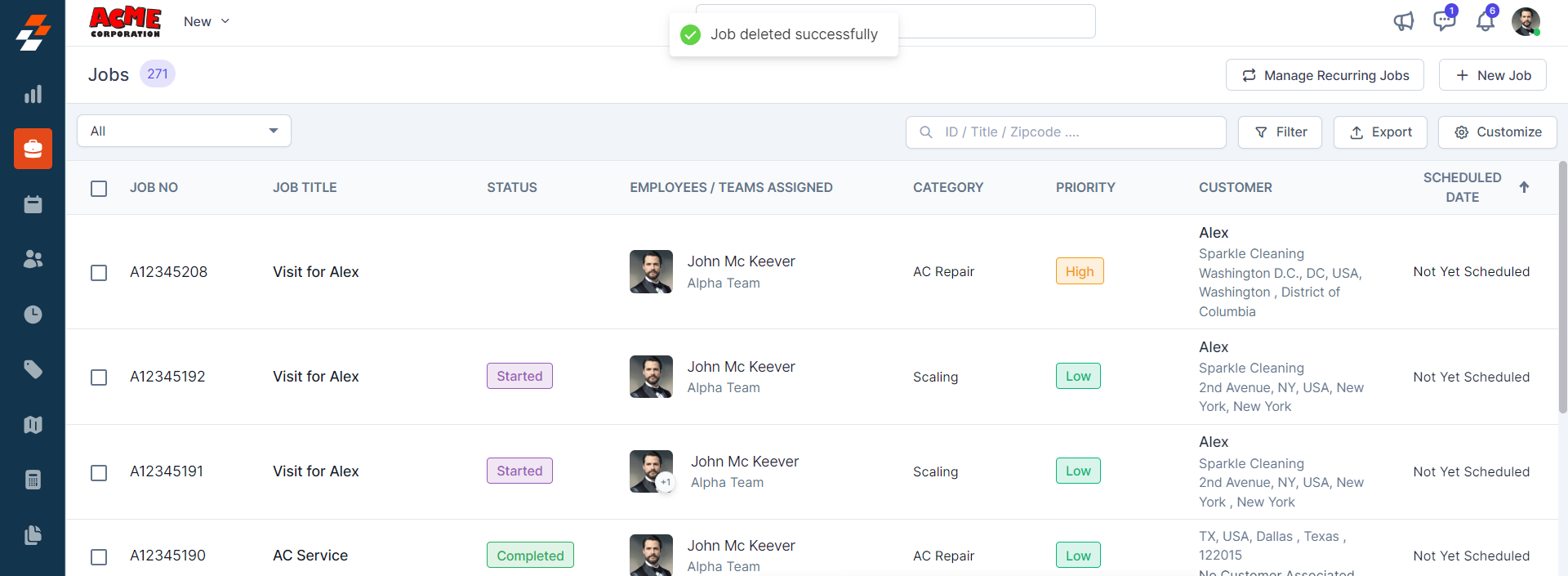 3. The job is deleted successfully.