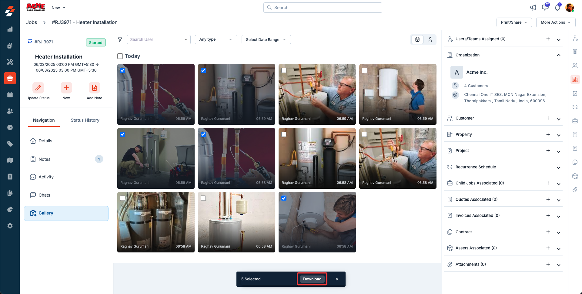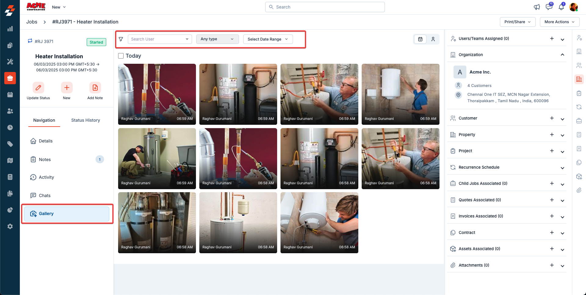 The Gallery feature in Zuper’s Job Details page brings all your job-related photos and videos into one unified view—no more digging through Checklists, Notes, or Attachments! Accessible via the Zuper, this tab offers a seamless way to manage media.