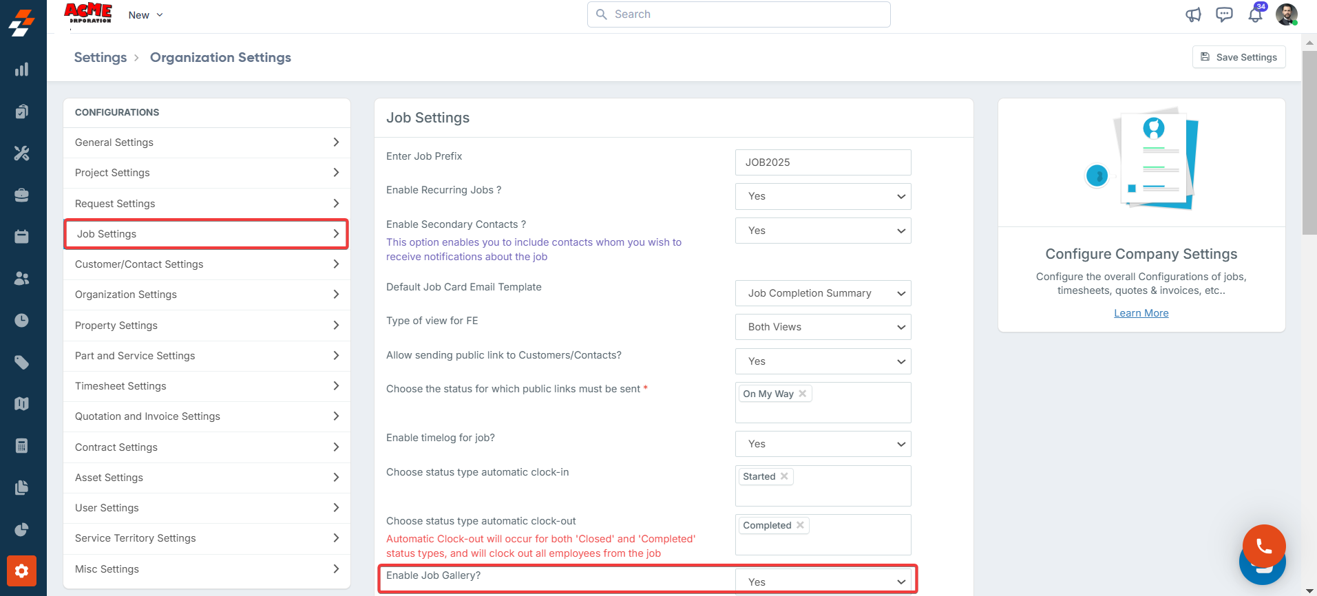 2. Under the “Job Settings,” Enable Job Gallery” option as “Yes.”