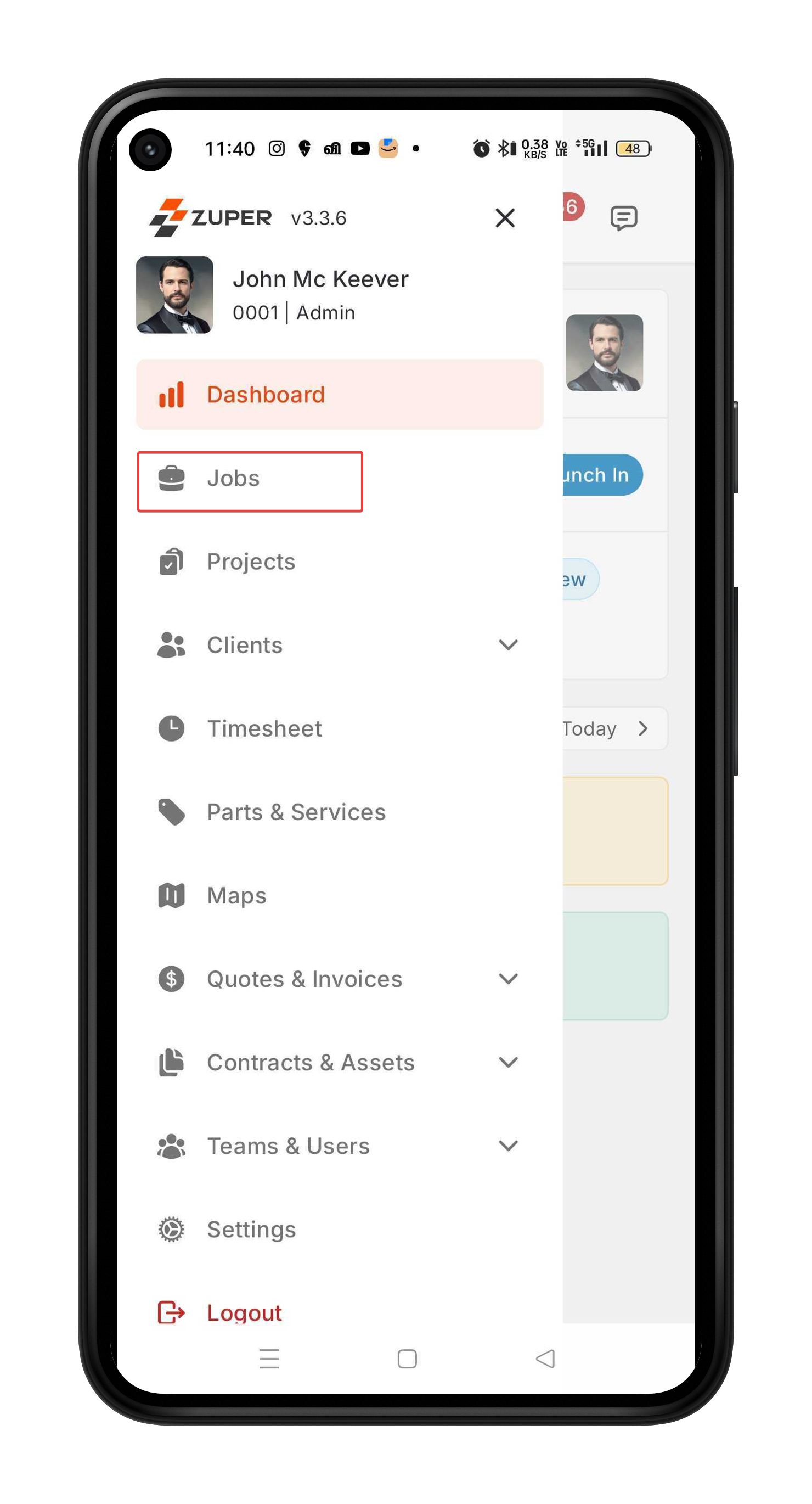 How to access and manage jobs in the Zuper mobile app?