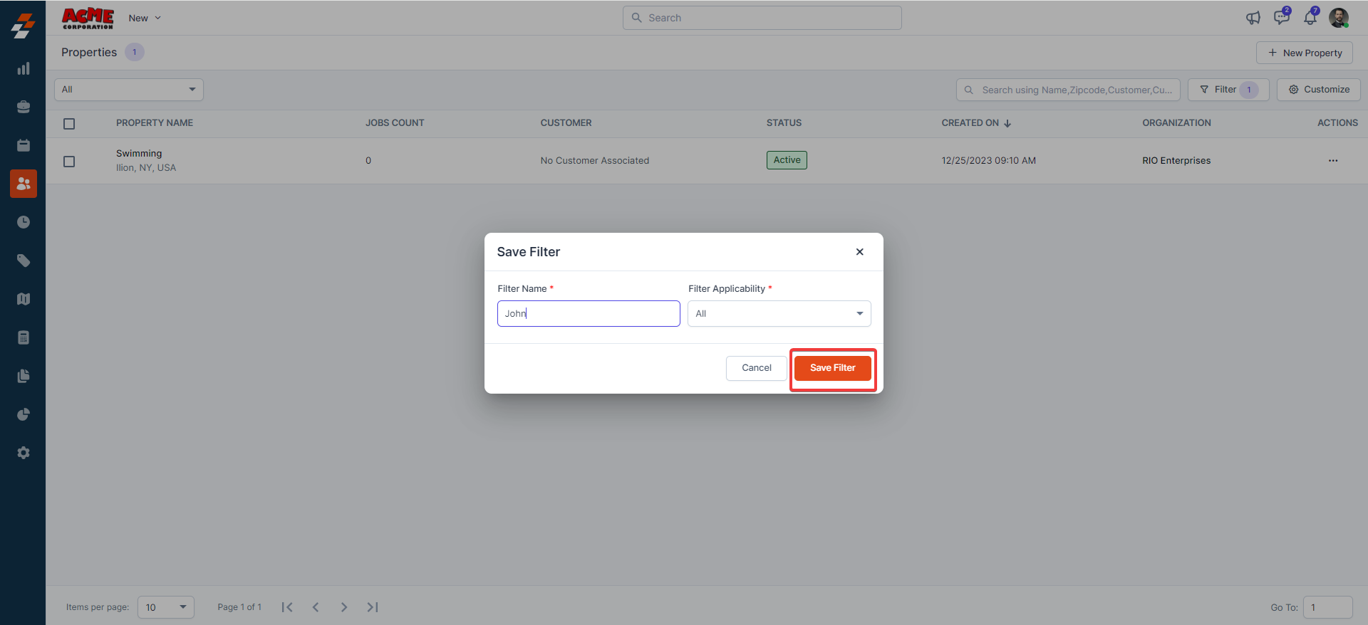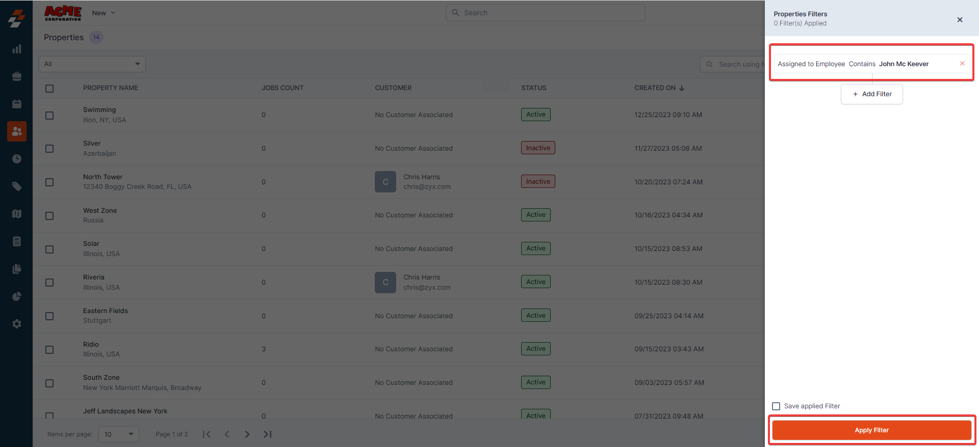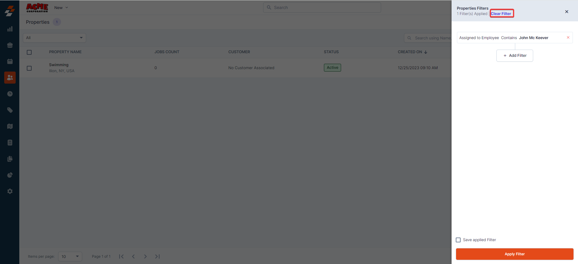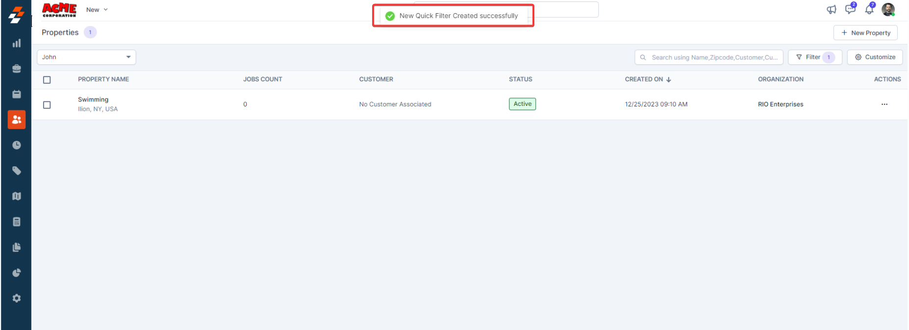 2. Use the “Quick Filter” dropdown to access and select any saved quick filters.