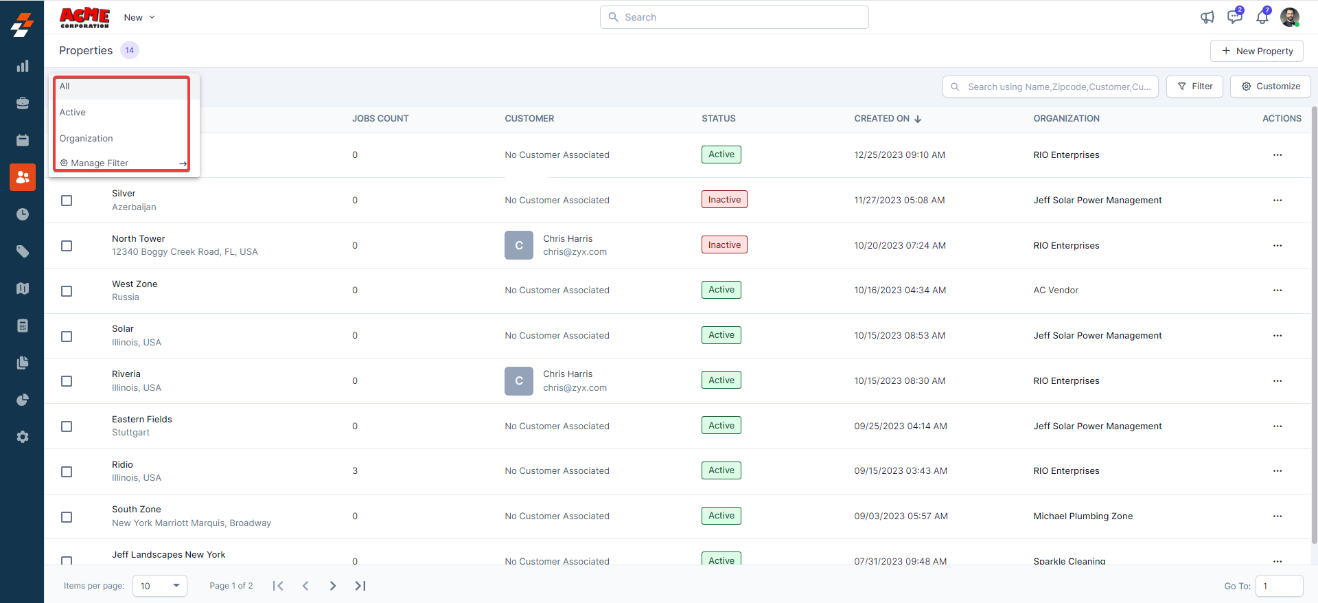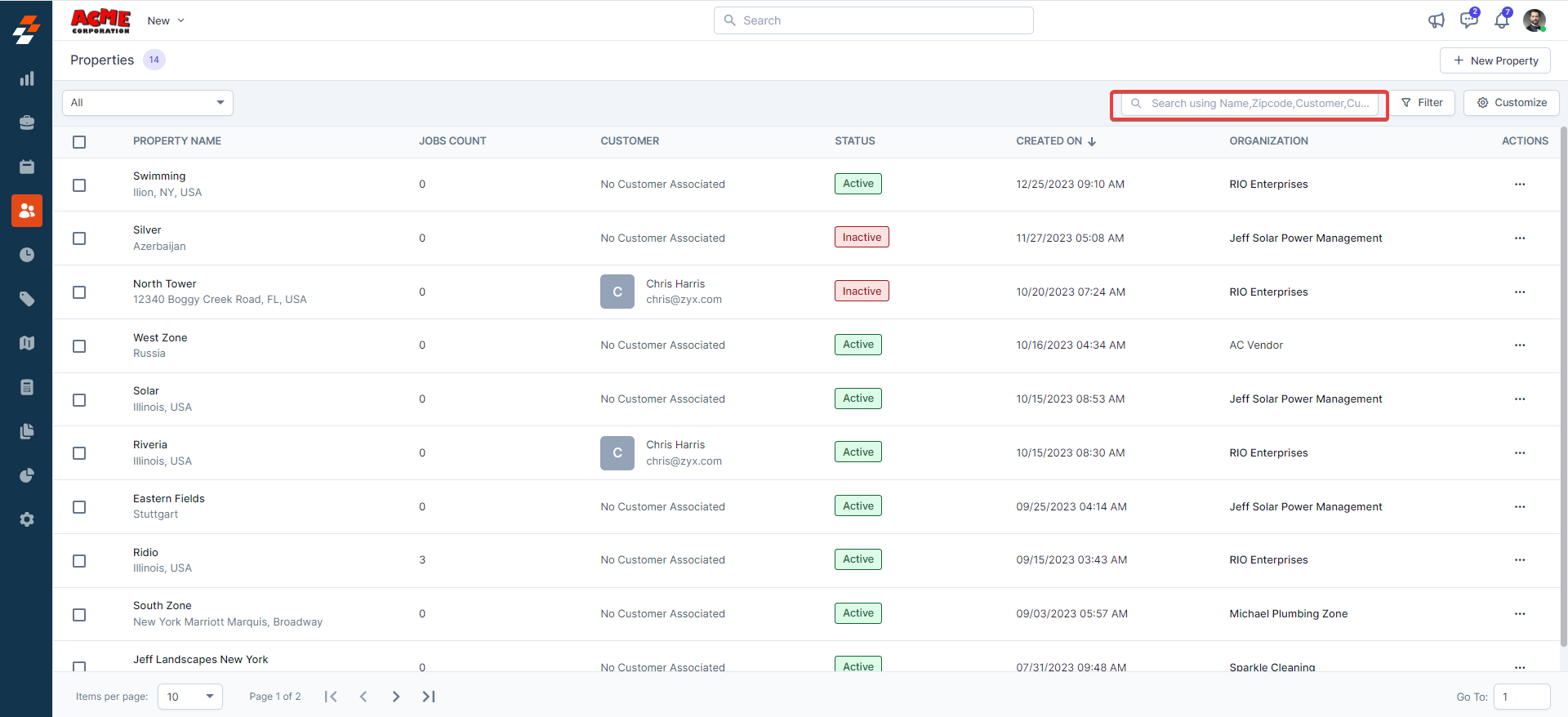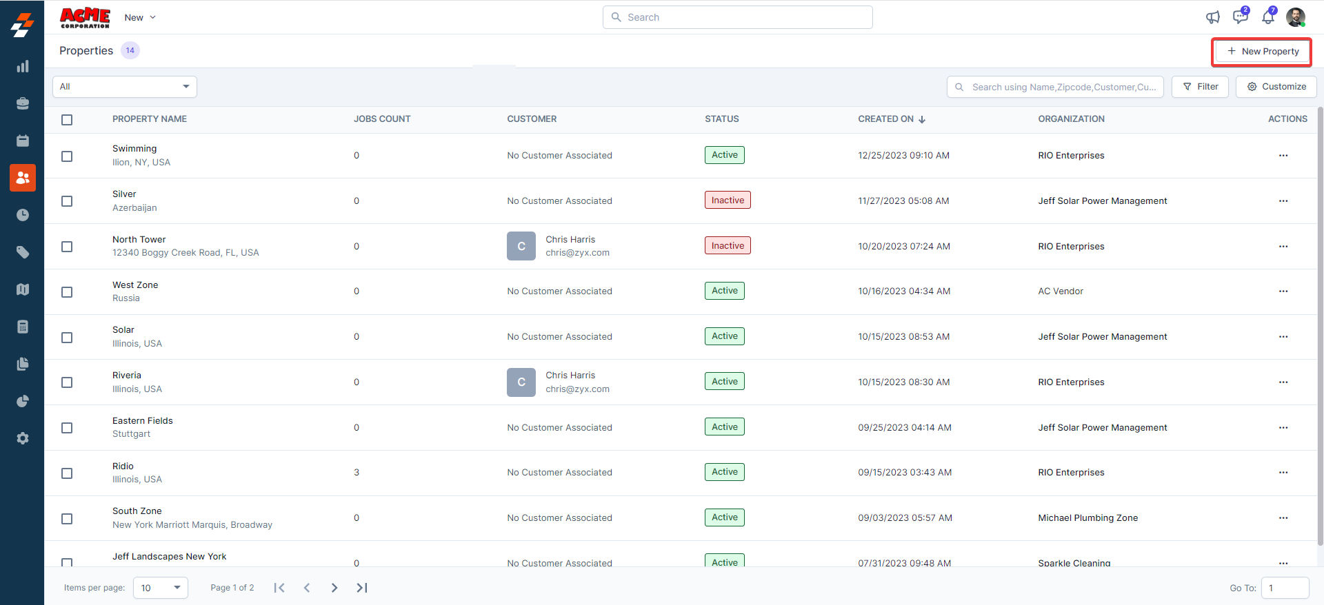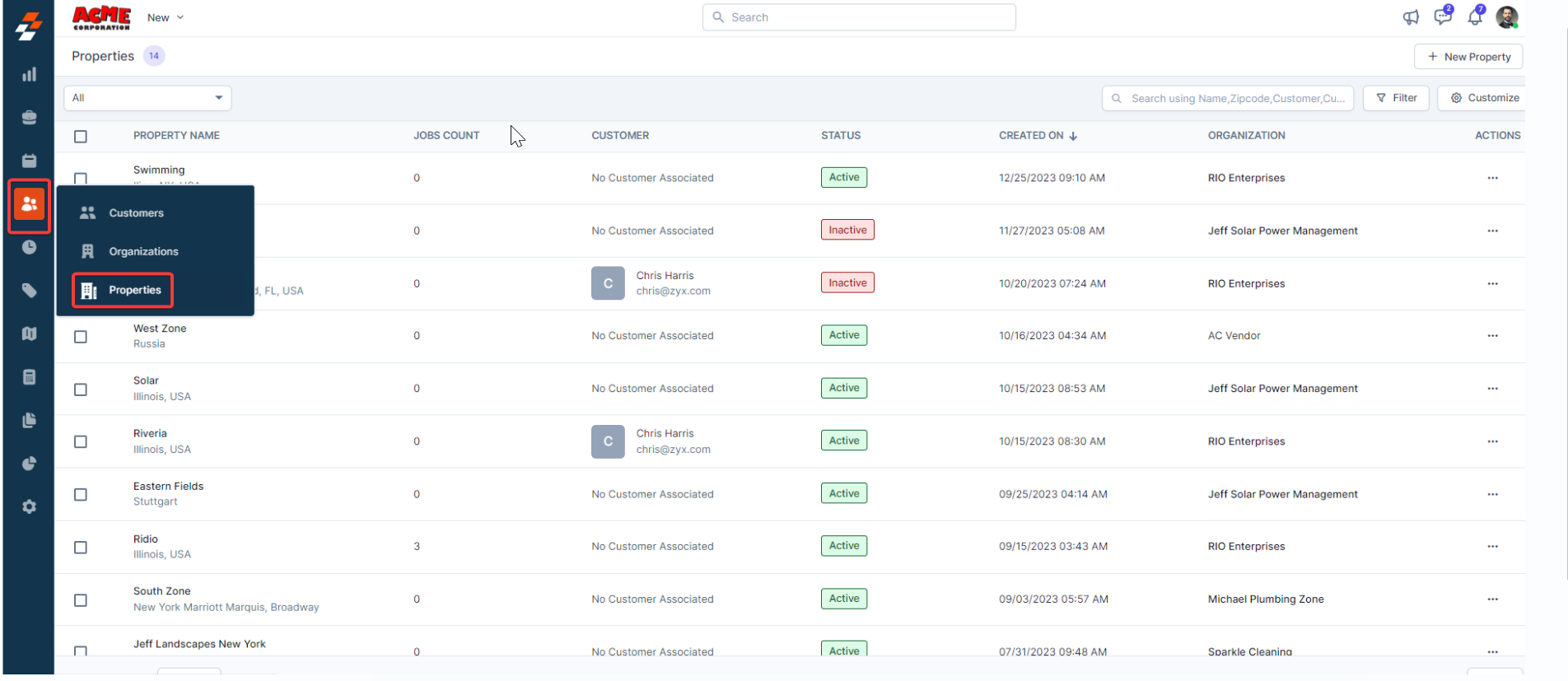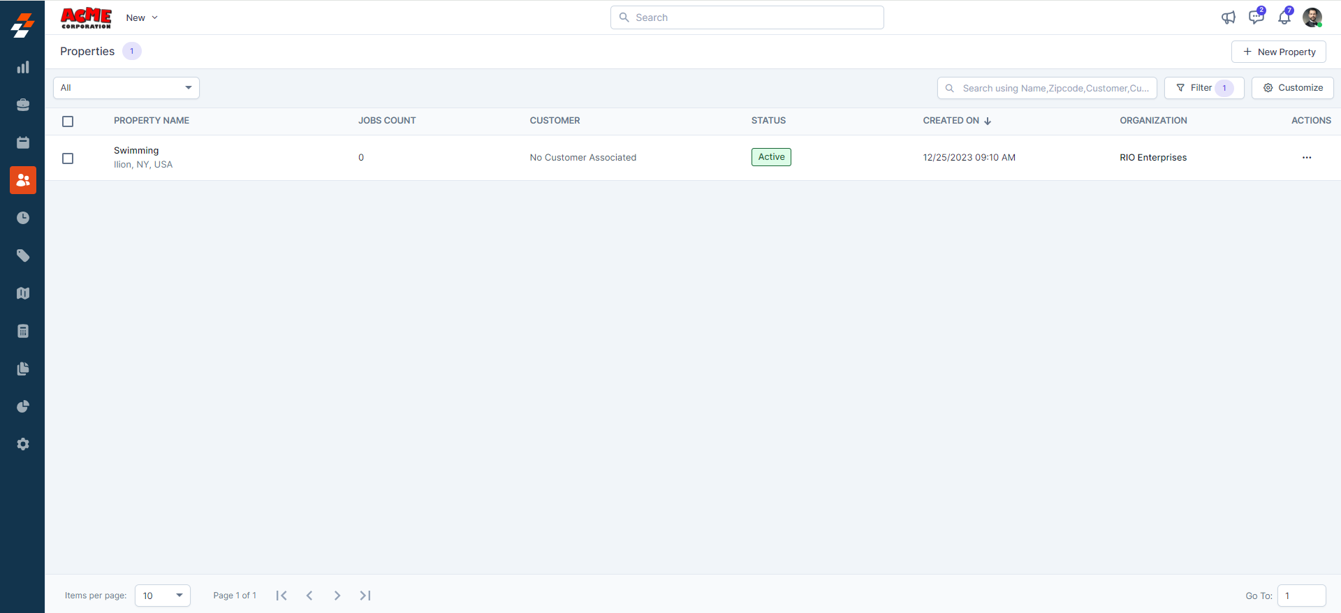 The property is the physical space occupied by the customer where the field technician performs the service. It contains a different list of resources and mapped customer details. Managing the property includes operational maintenance and controlling the real estate, residential, or commercial properties.