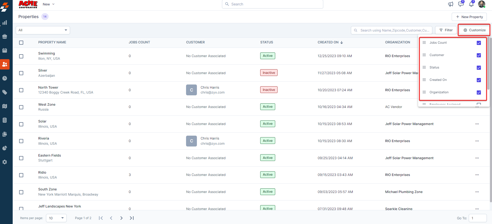 4. Use the "Customize" button to customize the table columns, and you can reorder the columns by drag and drop using the