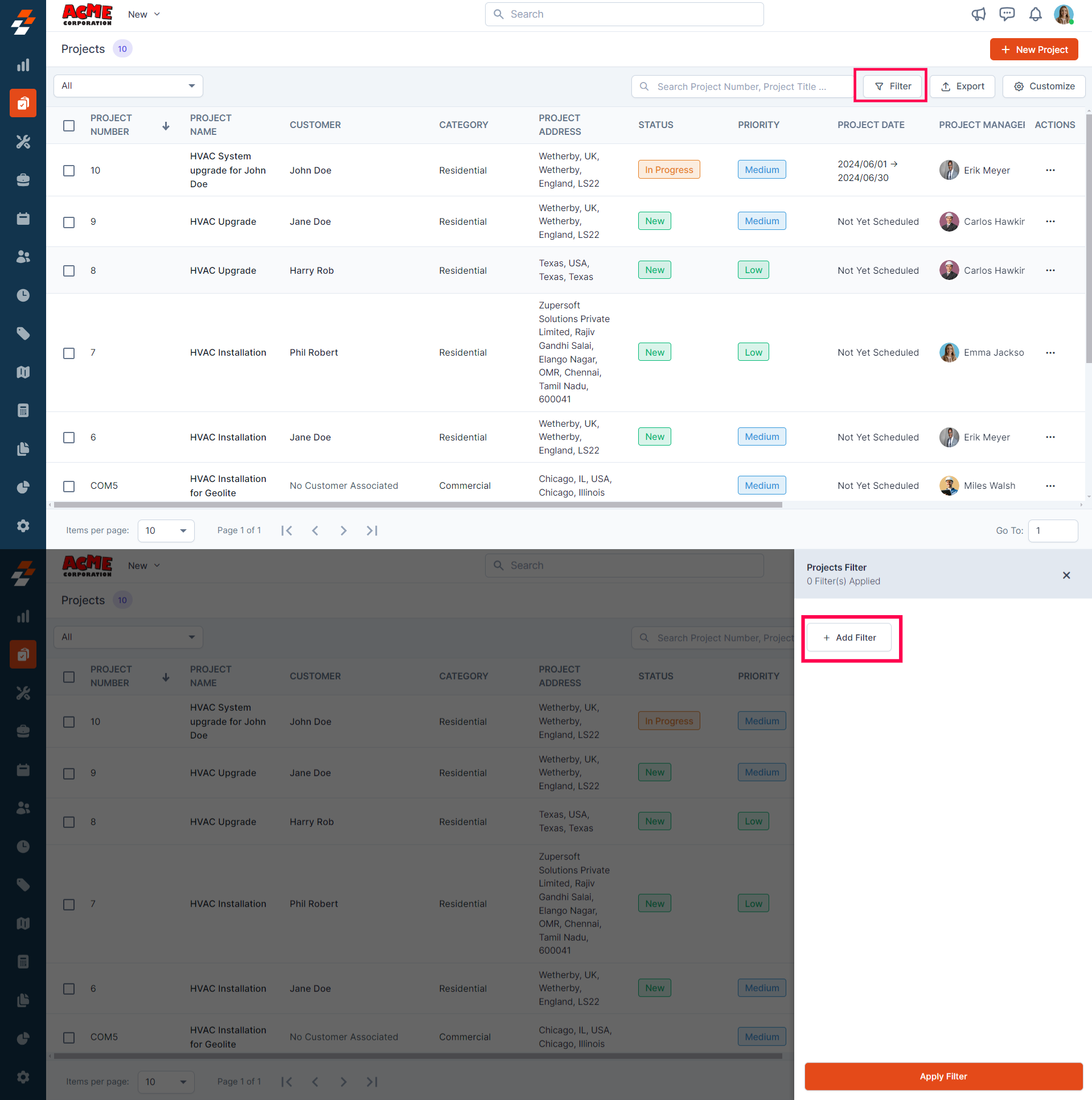 You also have the Filter option, which allows you to apply multiple filters based on specific fields. To do so, follow these steps: