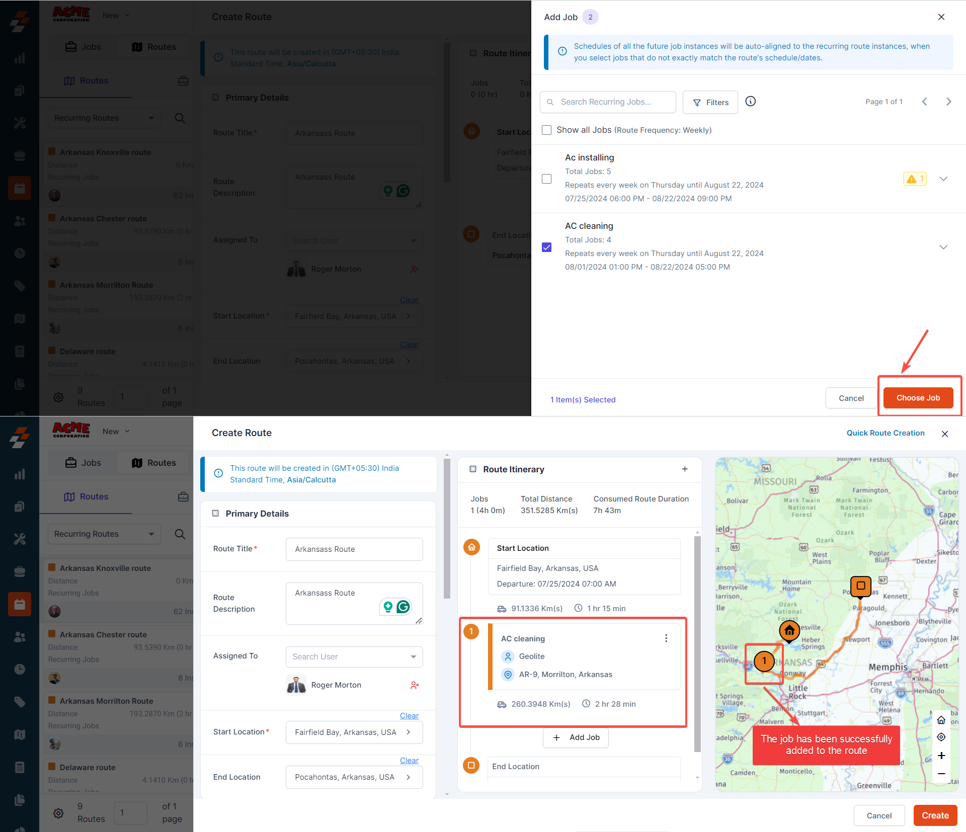 3. Once chosen, click the “Choose Job” button. The recurring job series (master job) will be added to the recurring route series.