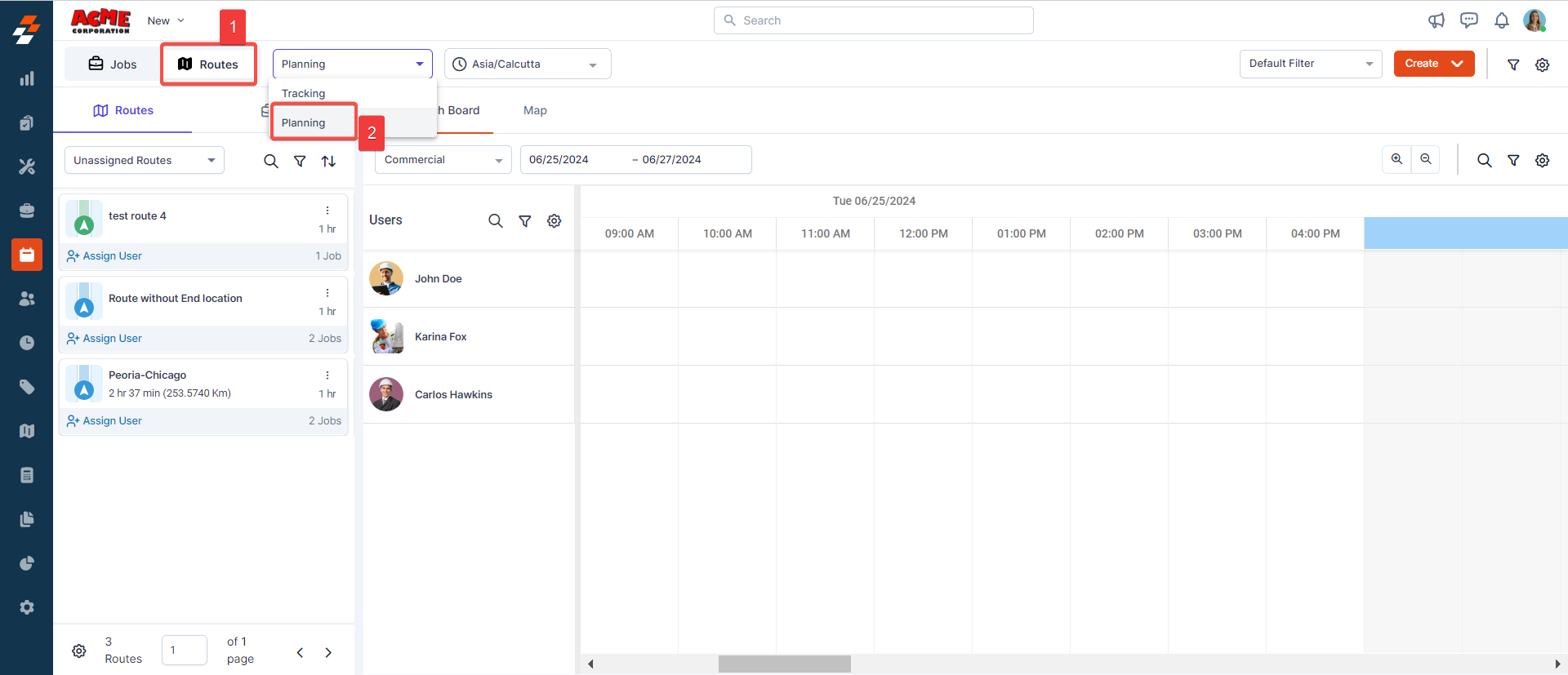 1. To manage recurring routes, choose the “Planning” section in the dispatch board from the "Routes" Stream as shown below: