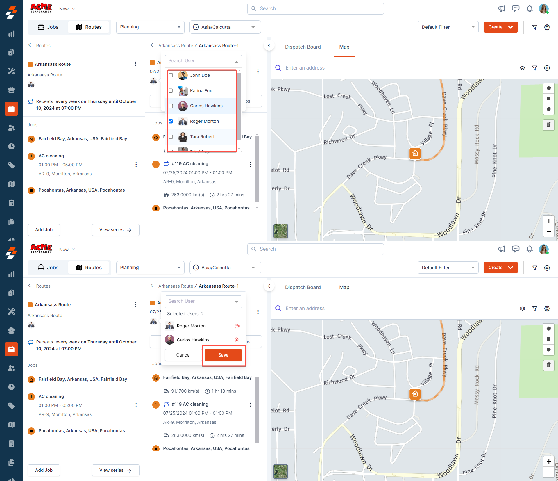 You can directly add or remove a user from any route instance to manage assignments effectively. Here’s how: