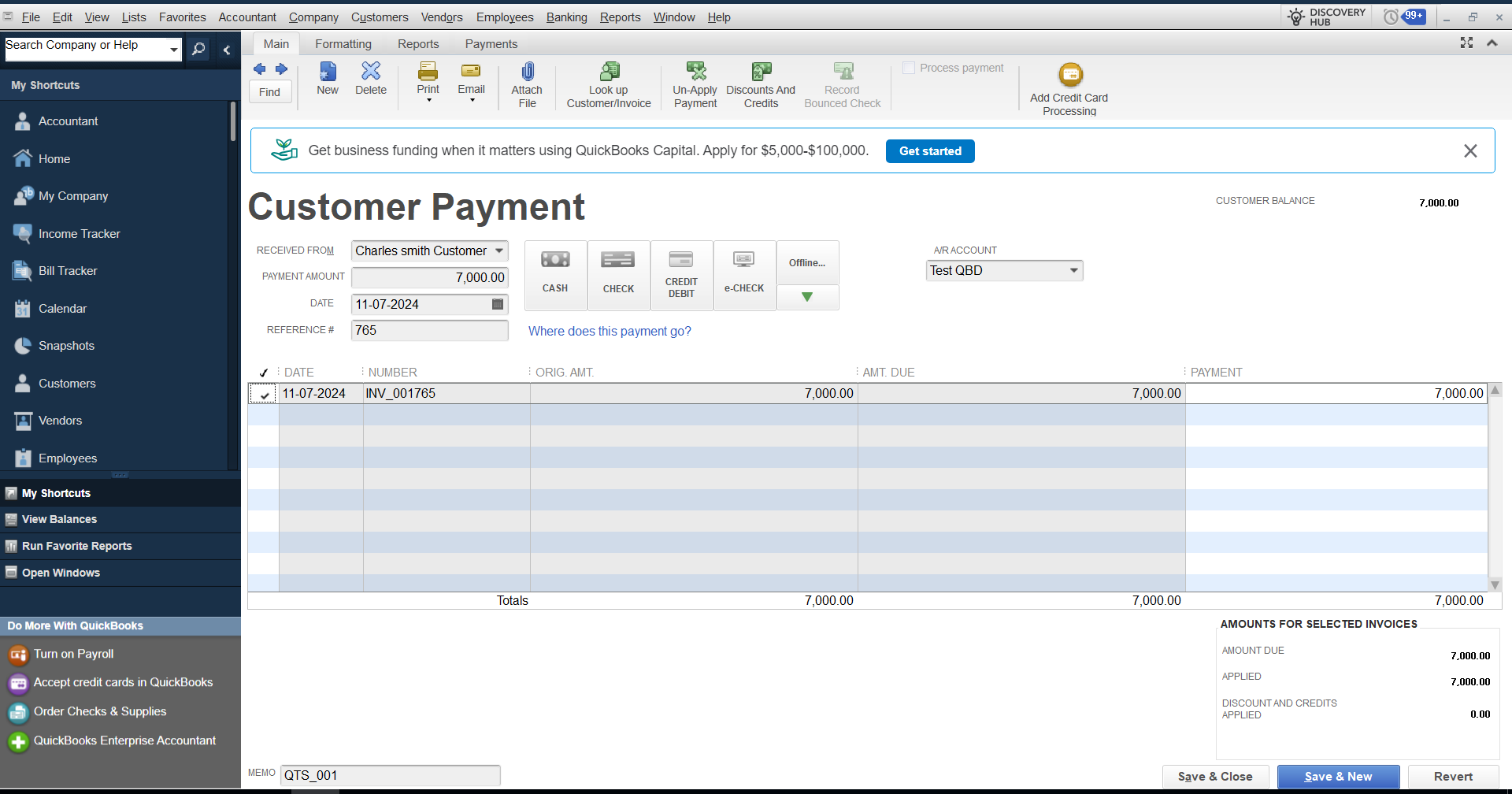 - When Zuper pushes payments, the payments can be viewed against their corresponding invoices in QuickBooks Desktop.