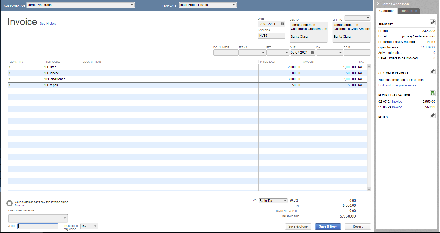 - The fee and tip entered in Zuper invoice will not be synced in Quickbooks desktop.