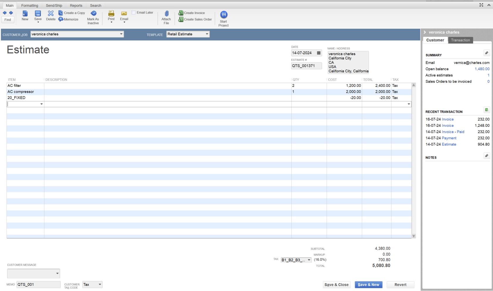 - The fee entered in a Quote will not be pushed to QuickBooks Desktop.