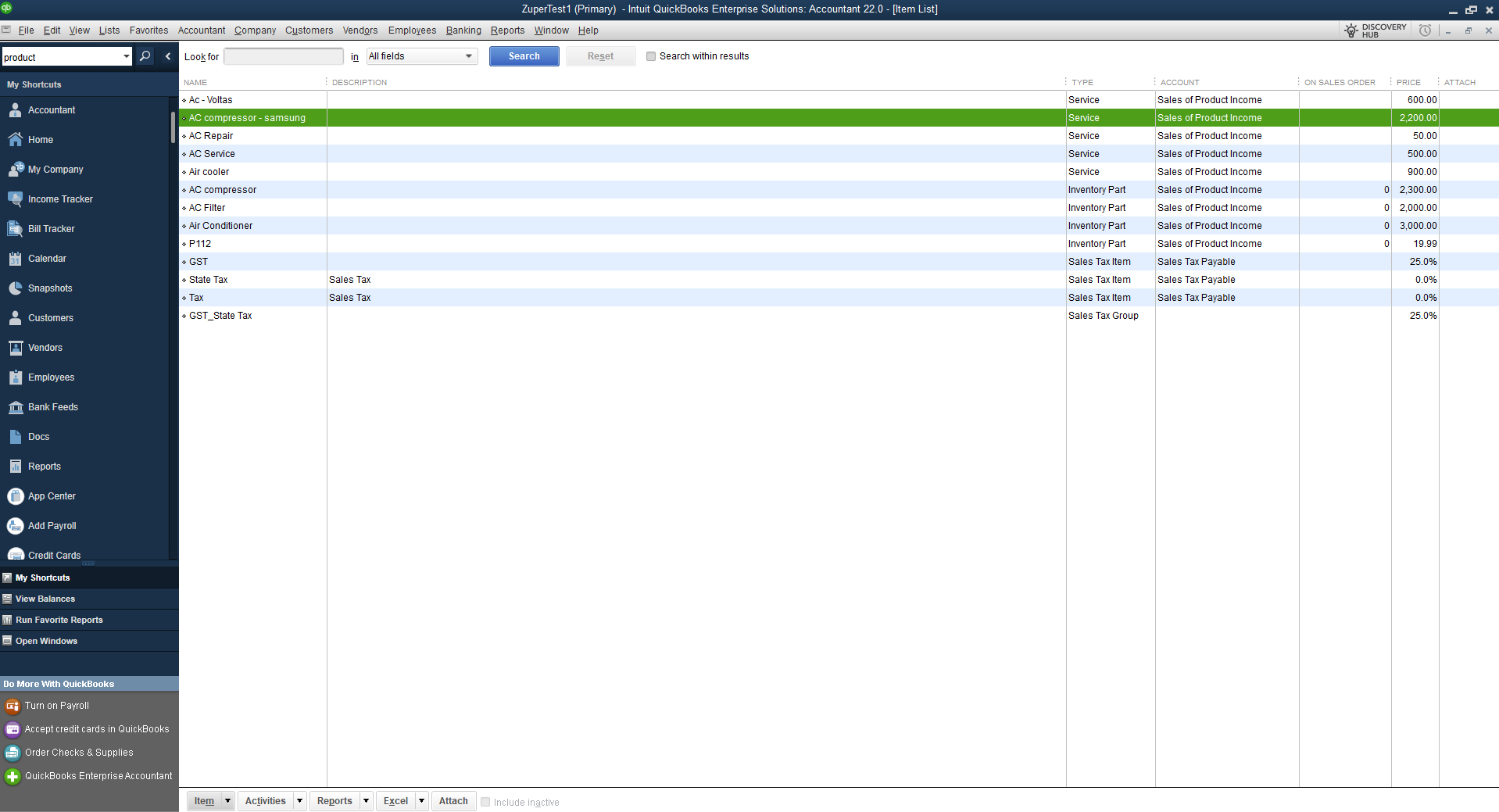 Zuper Parts & Services – QuickBooks Desktop Items & Services